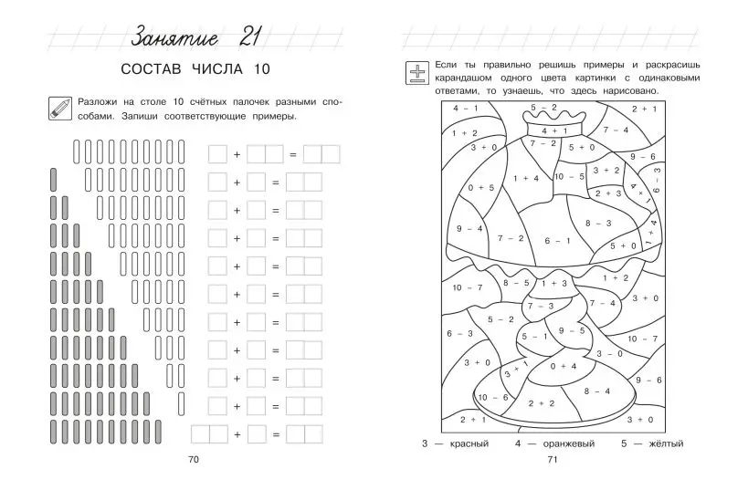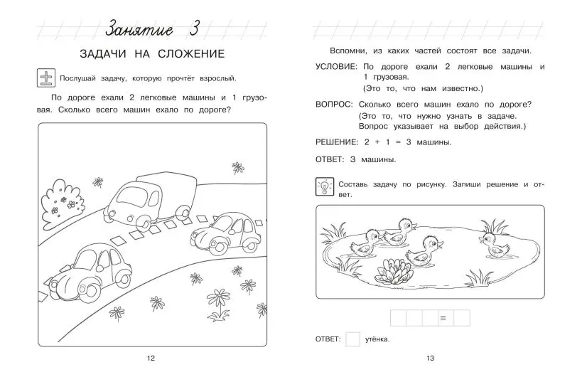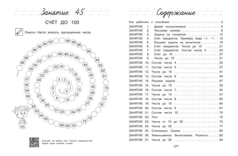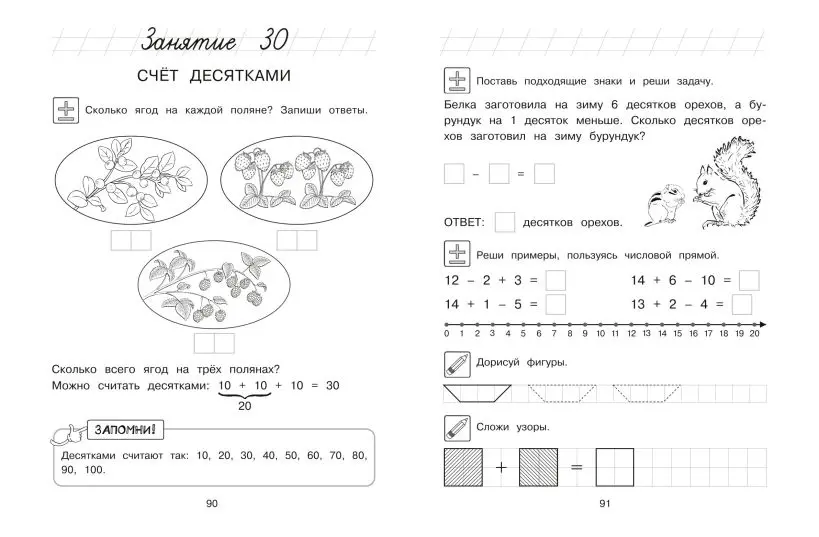 Выполняя интересные игровые задания, ребенок повторит состав числа, будет решать примеры и задачи на сложение и вычитание с помощью числовой прямой в пределах 20, познакомится с четными и нечетными числами, углами, отрезками, плоскими и объемными фигурами, научится считать десятками, потренируется в определении времени по часам. Кроме того, для детей, успешно справившихся с основными упражнениями, в книге предлагаются более сложные задания — счет до 100, примеры с двузначными числами. Знания, умения и навыки, которые дошкольник приобретет в результате занятий, позволят ему почувствовать уверенность в себе и в дальнейшем их успешно использовать.