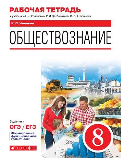 Рабочая тетрадь входит в состав УМК по обществознанию А.И. Кравченко, Р.И. Хпсбулатова, Е.А. Певцовой и др., соответствует ФГОС основного общего образования, содержанию и структуре учебника для 8 класса. Тетрадь преднезначена для проверки и закрепления знаний учащихся, подготовки к ВПР, ОГЭ и ЕГЭ по обществознанию. Она содержит различные виды заданий, проблемные вопросы, дополнительные тексты, иллюстрации, диаграммы. Условными знаками отмечены задания повышенной сложности, а также задания в формате Международной программы по оценке образовательных достижений учащихся (PIZA), направленные на формирования функциональной грамотности.