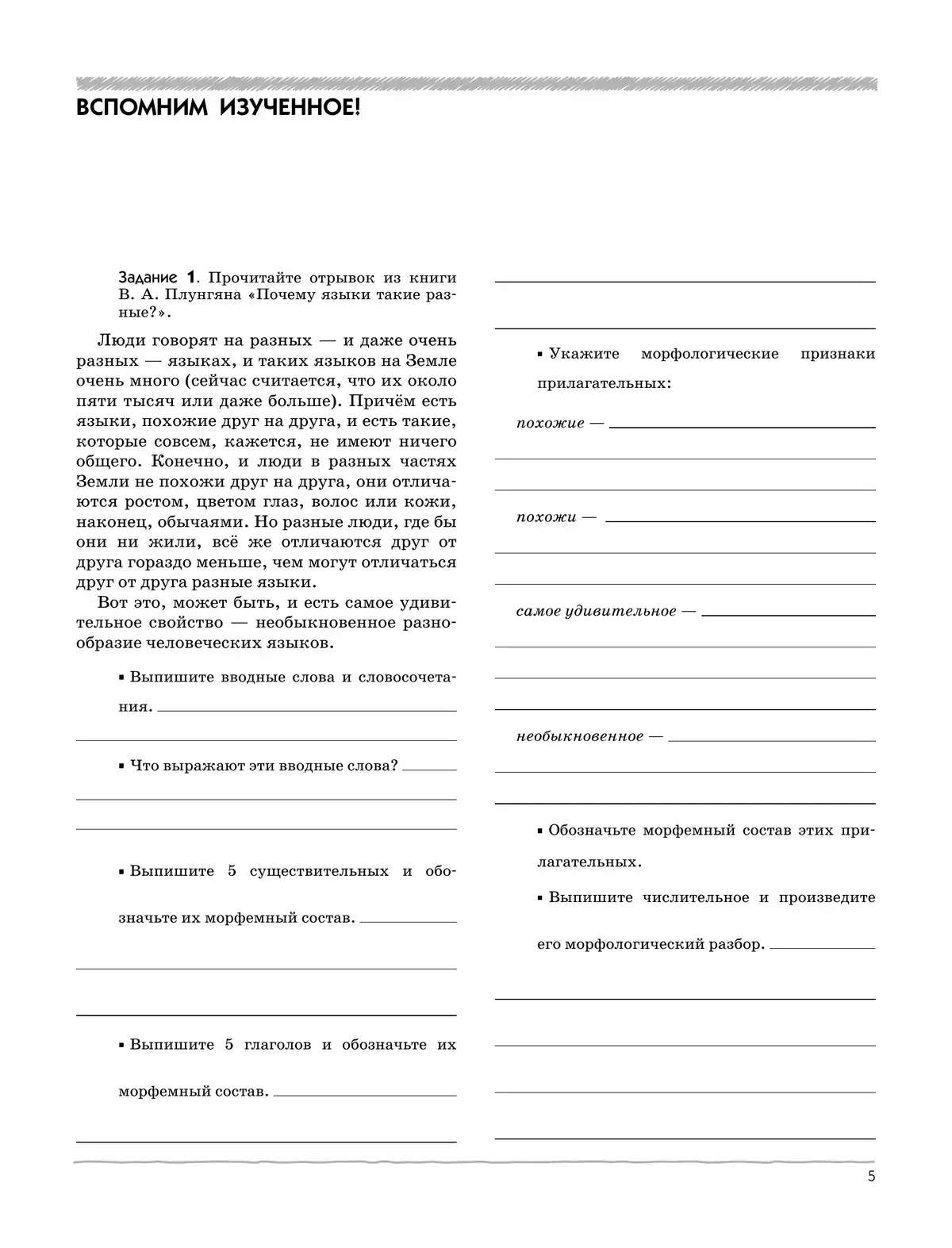 Рабочая тетрадь по русскому языку содержит задания и упражнения по следующим разделам морфологии: "Местоимение", "Причастие", "Деепричастие", "Служебные части речи", "Междометие". Они могут быть использованы учителем для работы в классе и в качестве материала для домашних заданий, а также во внеклассной работе. Рабочая тетрадь входит в учебно-методический комплекс для углублённого изучения русского языка, подготовленный под руководством профессора В. В. Бабайцевой: "Русский язык. Теория. 5-9 классы" (автор В. В. Бабайцева), "Сборник заданий по русскому языку. 6-7 классы" (авторы В. В. Бабайцева и Л. Д. Беднарская), "Русский язык. Диагностические работы. 7 класс" (автор И. Н. Политова). Однако рабочая тетрадь представляет собой вполне самостоятельное пособие и будет полезна учащимся и преподавателям русского языка, работающим и по другим учебным программам.