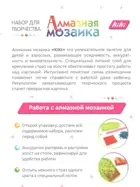В комплекте: холст с нанесенным рисунком, стразы, лоток для страз, инструкция, стилус, сухой клей, пакетики зип-лок для хранения страз.