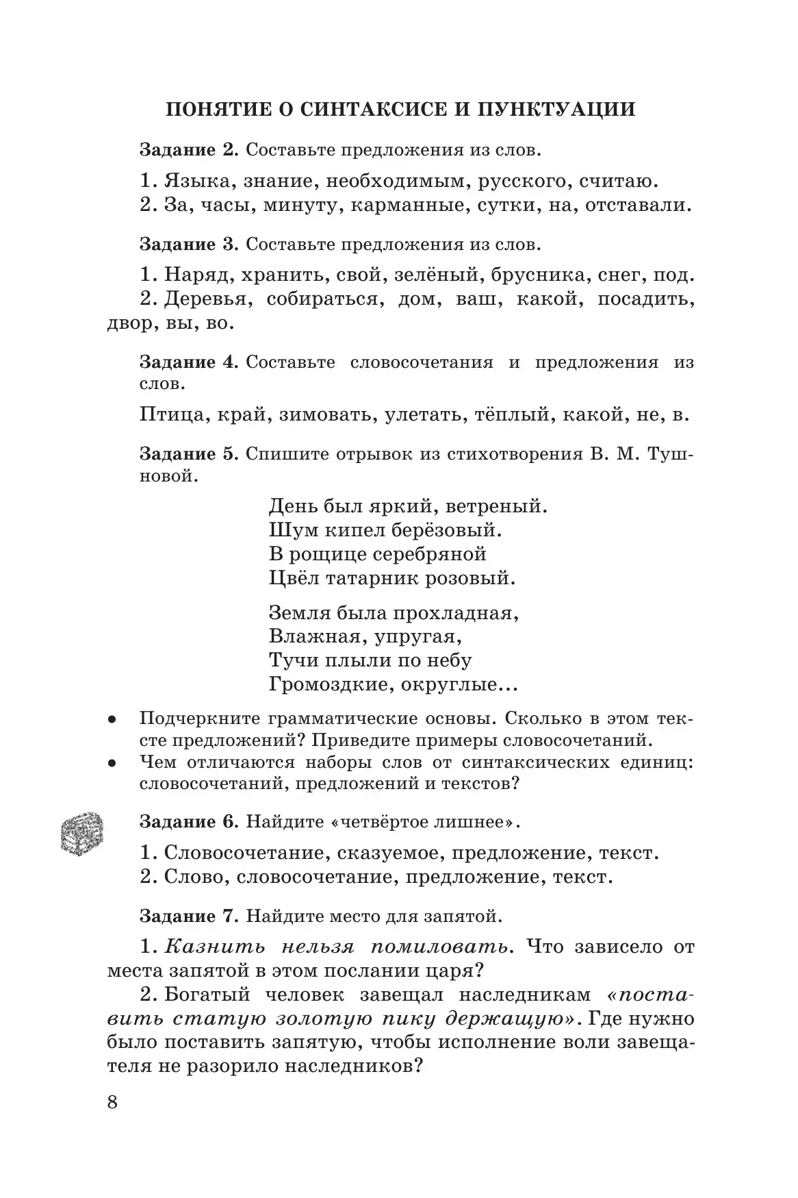 Сборник содержит задания, помогающие усвоить значение и форму синтаксических единиц:словосочетания,простого и сложного предложений,текста,–и на этой основе сформировать умения правильно строить устную и письменную речь.