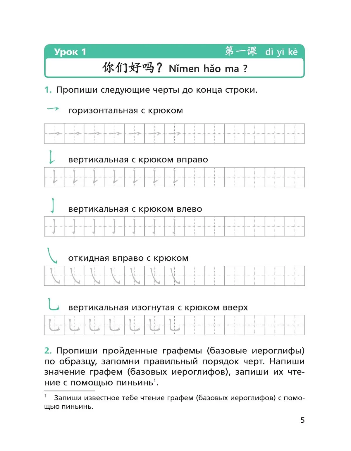 Прописи входят в состав учебно-методического комплекта (УМК) по китайскому языку (второму иностранному языку) для 5 класса общеобразовательных организаций и дополняют учебник системой заданий, обеспечивающих комплексное развитие умений и навыков письма.