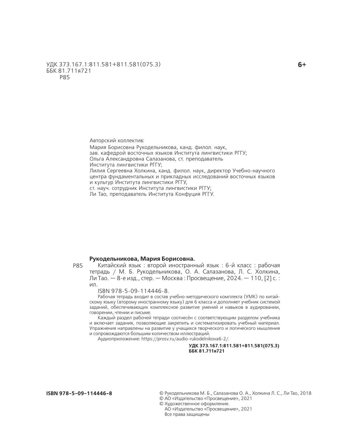 Рабочая тетрадь входит в состав учебно-методического комплекта (УМК) по китайскому языку (второму иностранному языку) для 6 класса и дополняет учебник системой заданий, обеспечивающих комплексное развитие умений и навыков в аудировании, говорении, чтении и письме