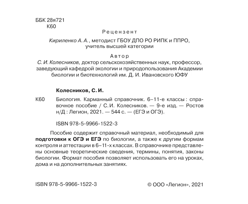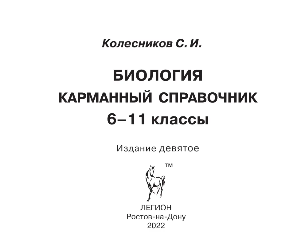 Издание содержит справочный материал, необходимый для систематизации знаний и подготовки к ОГЭ и ЕГЭ по биологии, а также к другим формам контроля и аттестации в 6-11 классах. В справочнике представлены основные теоретические сведения, термины, понятия, законы биологии.