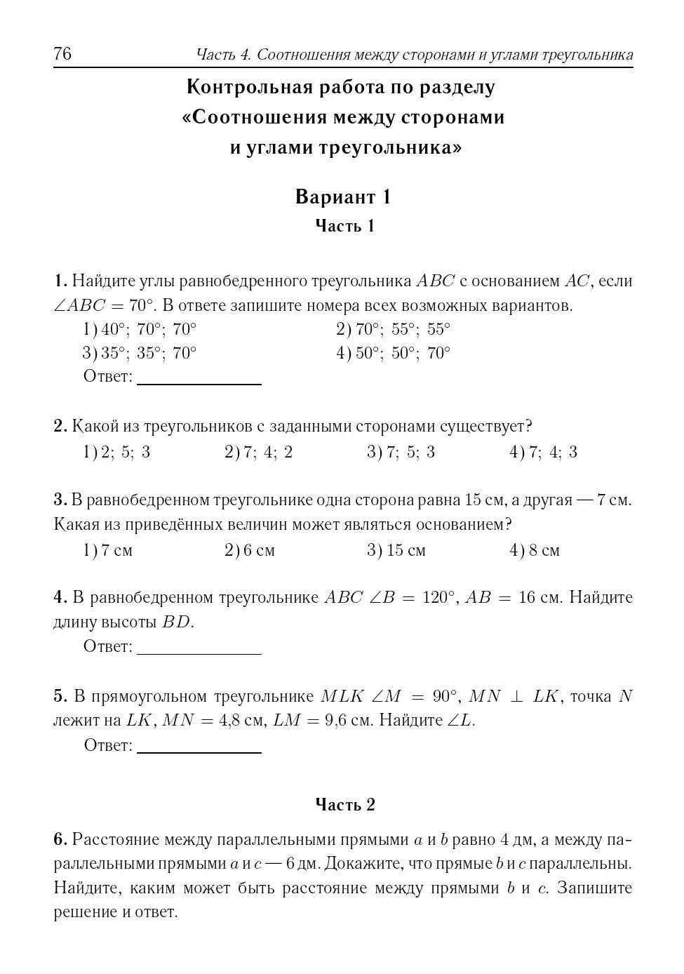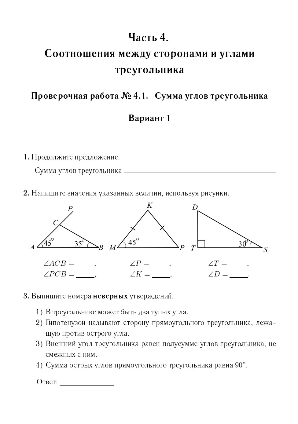Пособие содержит:• проверочные работы в двух вариантах по каждой теме;• контрольные работы в четырёх вариантах к каждому разделу;• практикум по решению задач ВПР;• итоговую работу за курс 7-го класса в шести вариантах, в том числе один вариант с решением;• справочник;• ответы ко всем заданиям.