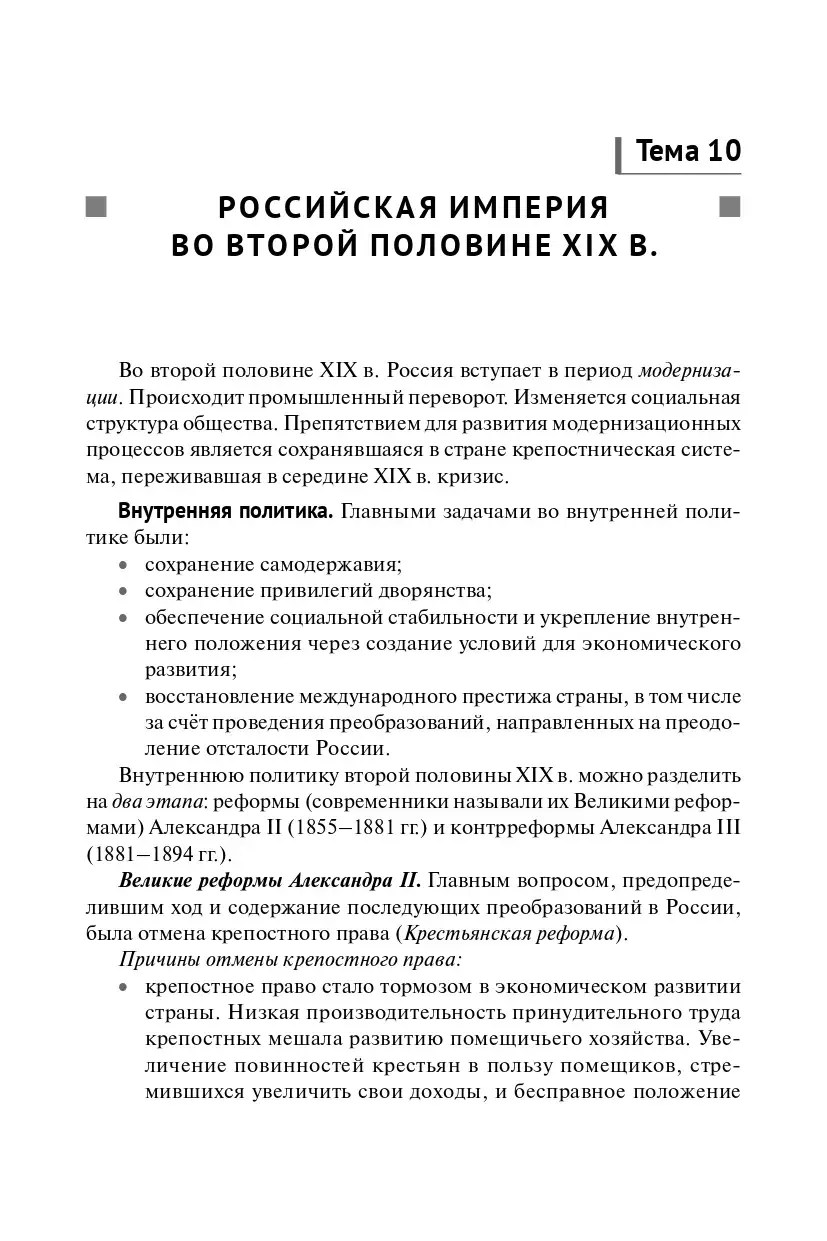 Справочник призван сориентировать выпускников в процессе изучения истории и поможет при подготовке к ОГЭ и ЕГЭ. В пособии излагаются основные вопросы истории России с древности до настоящего времени. Материал книги структурирован по проблемно-хронологическому принципу и охватывает все темы истории, проверяемые на ОГЭ и ЕГЭ. Справочник содержит также: словари понятий и персоналий к каждой теме; хронологические таблицы; словарь международных договоров России.