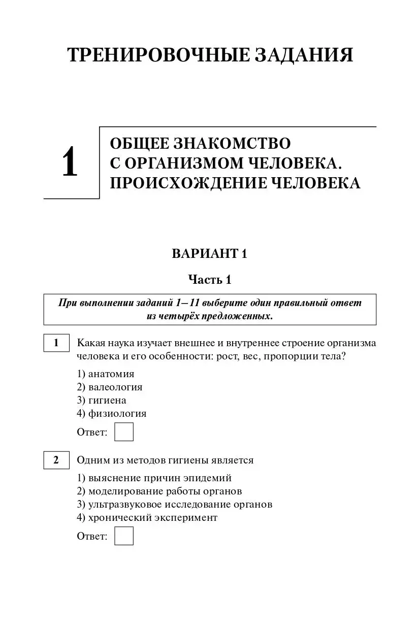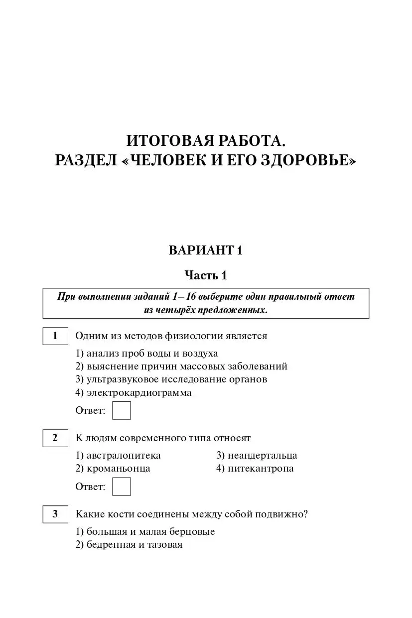 Материалы пособия помогут систематизировать знания и отработать навыки выполнения заданий по темам раздела «Человек и его здоровье».