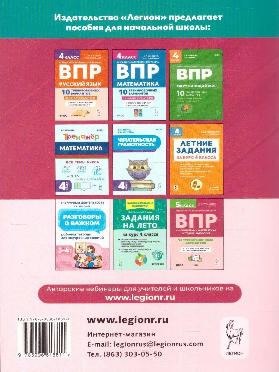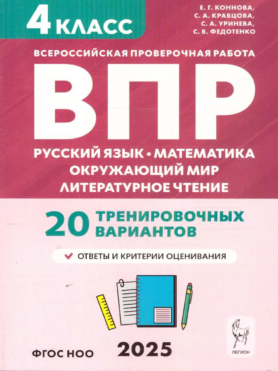 ВПР Русский язык, Математика, Литературное чтение, Окружающий мир 4 класс. 20 тренировочных вариантов. Порядок проведения ВПР в 4-м классе в 2025 году будет изменён. Русский язык и математика становятся обязательными предметами для сдачи ВПР. Окружающий мир теперь является предметом по выбору наряду с литературным чтением и иностранным языком. Наше пособие предлагает варианты по двум из необязательных предметов; варианты по английскому языку выпускаются отдельным пособием.