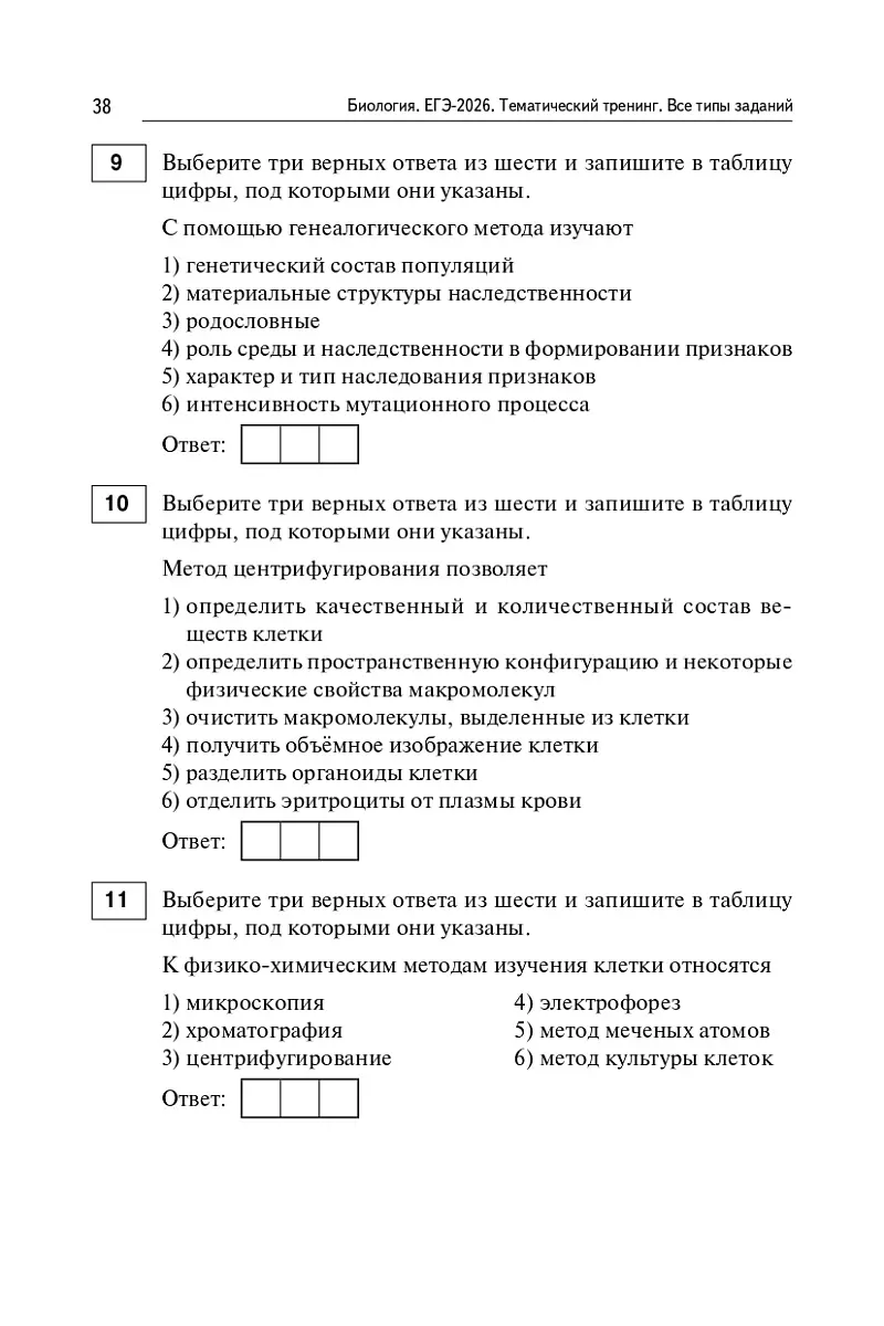 ЕГЭ-2026. Биология. 10-11 класс. Тематический тренинг. Все типы заданий