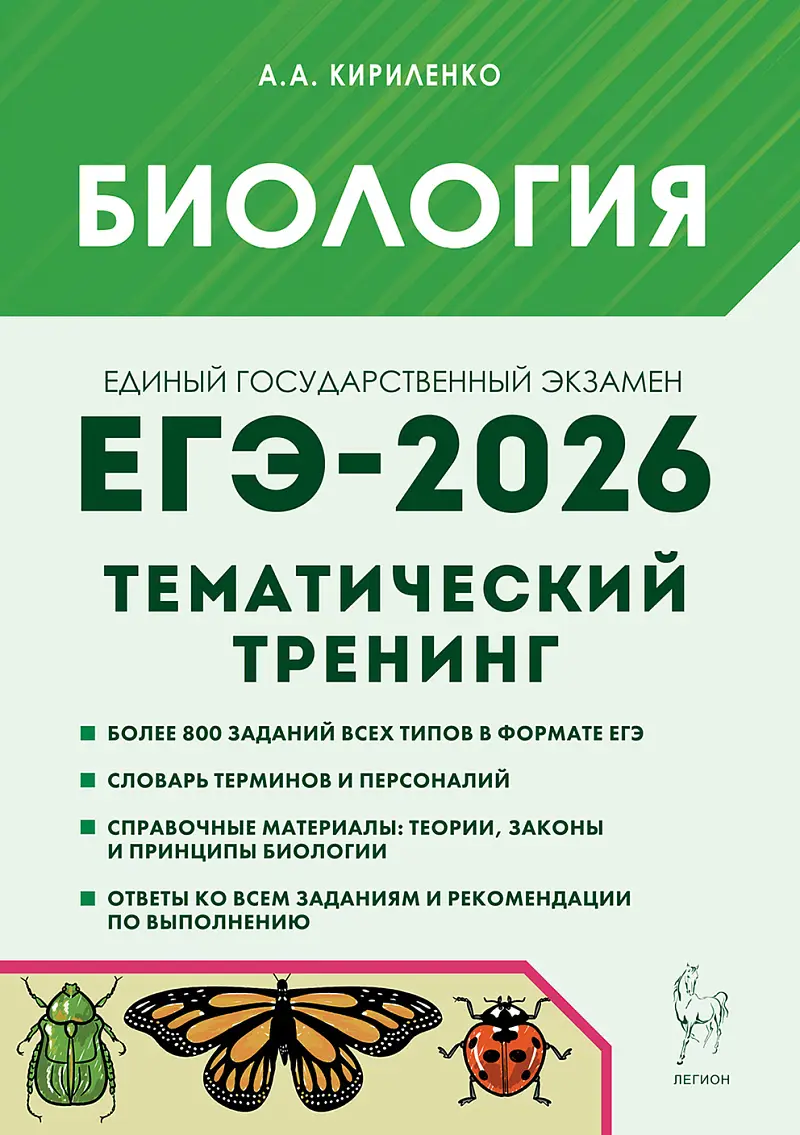 Пособие даёт полное представление о содержании экзамена и вместе с книгой издательства «Легион» «Биология. Подготовка к ЕГЭ-2026. 30 тренировочных вариантов по демоверсии 2026 года» поможет выпускникам качественно подготовиться к экзамену и получить высокий балл на ЕГЭ.