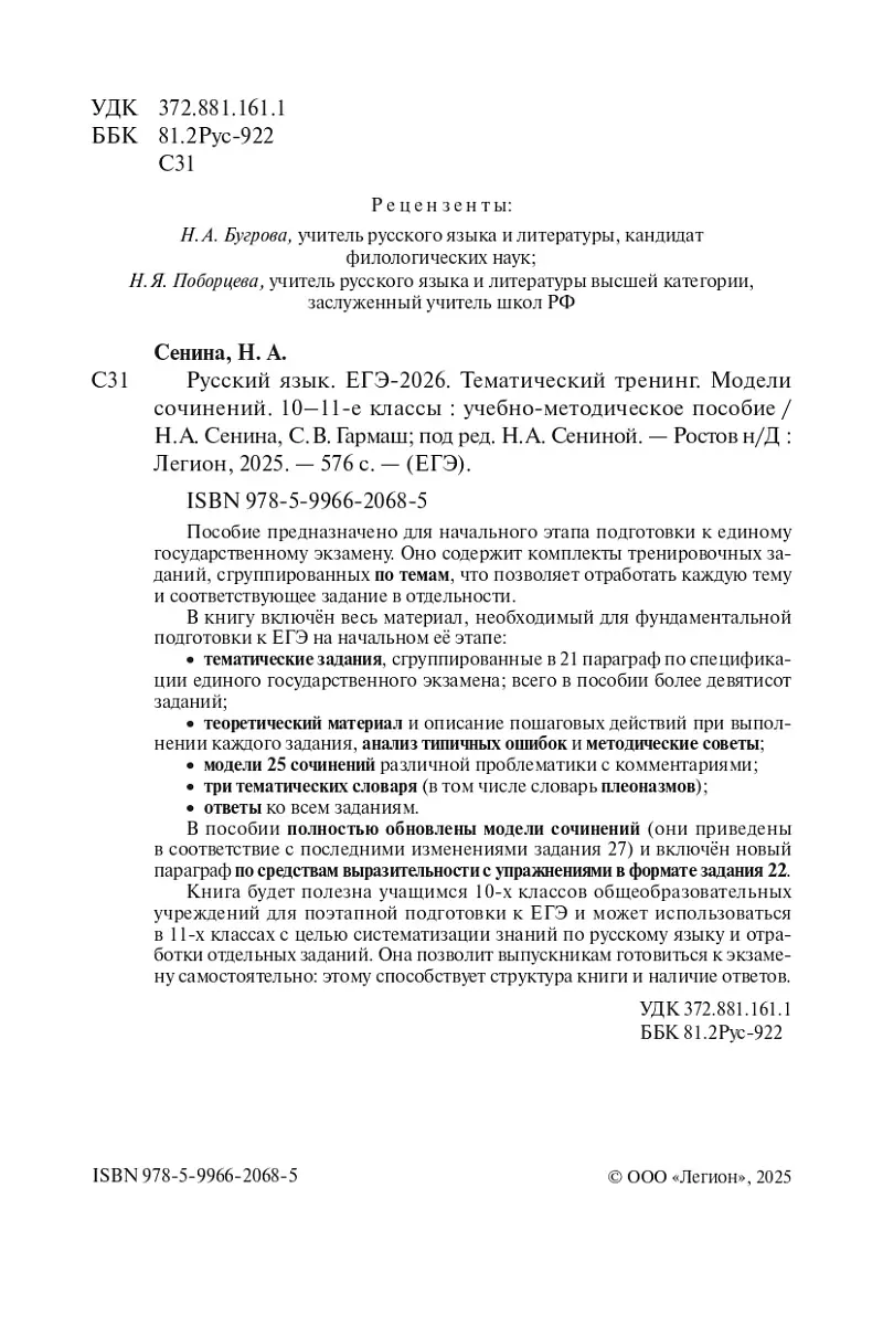 В пособии полностью обновлены модели сочинений (они приведены в соответствие с последними изменениями задания 27) и включён новый параграф по средствам выразительности с упражнениями в формате задания 22.