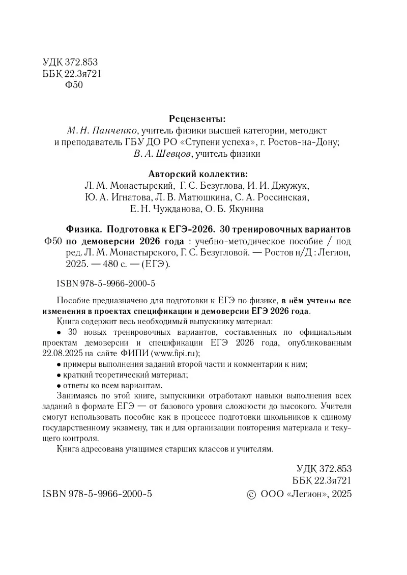 Пособие предназначено для подготовки к ЕГЭ по физике, в нём учтены все изменения в проектах спецификации и демоверсии ЕГЭ 2026 года.