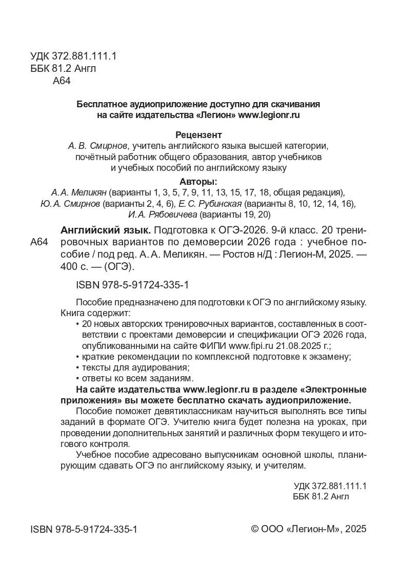 • 20 новых авторских тренировочных вариантов, составленных в соответствии с проектами демоверсии и спецификации ОГЭ 2026 года, опубликованными на сайте ФИПИ www.fipi.ru 21.08.2025 г.;