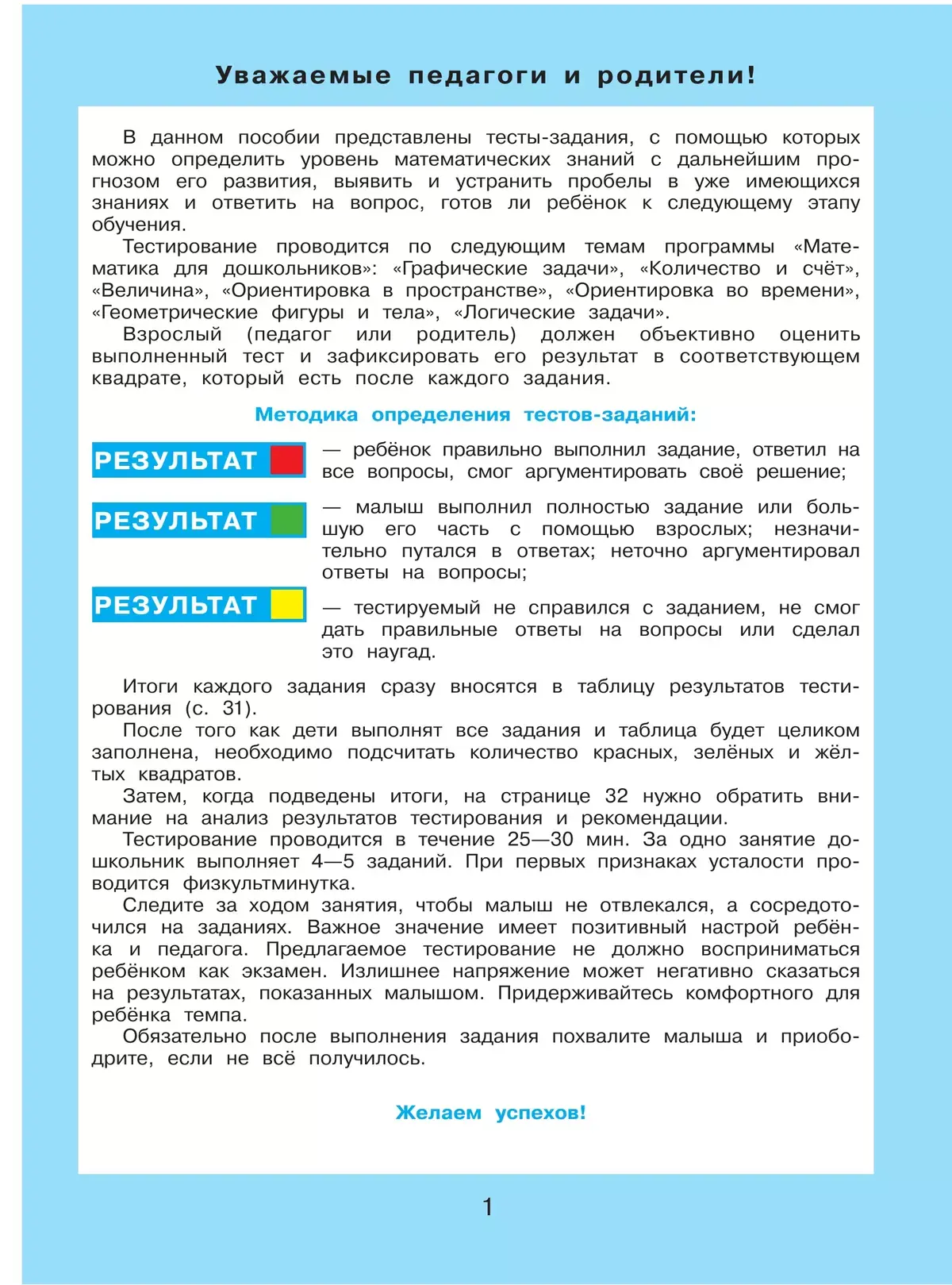В рабочей тетради представлены 60 тестов-заданий, которые позволят определить уровень математических знаний у дошкольников 5-6 лет и в случае необходимости принять меры по устранению пробелов в знаниях, умениях и навыках.