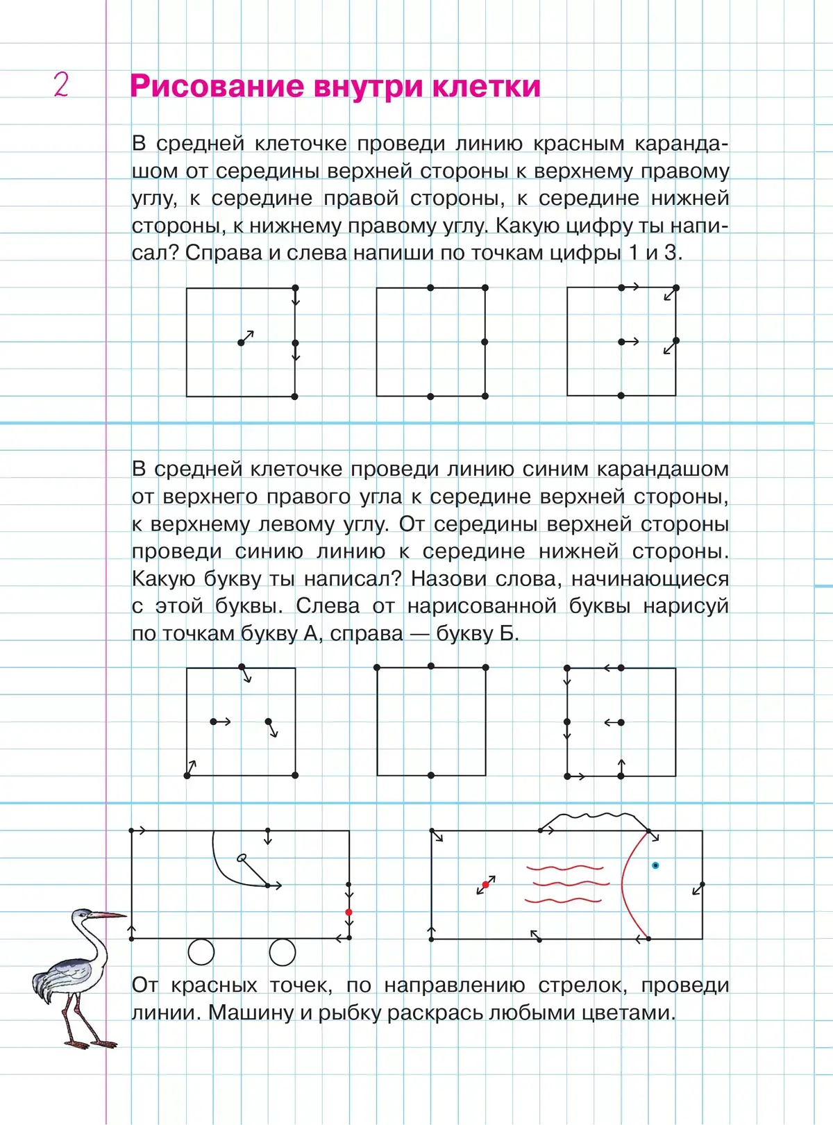 Рабочая тетрадь предназначена для подготовки ребенка к школе по математике. Выполняя различные практические задания, дети разовьют память, логическое мышление, мелкую моторику, научатся усидчивости и аккуратности. Под руководством взрослых они знакомятся с клеточкой, срисовывают, дорисовывают, выполняют графические диктанты.