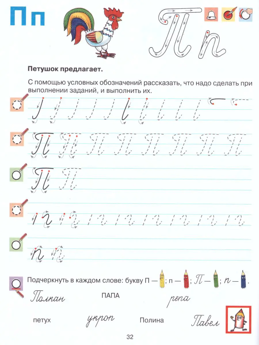 Прописи сделаны как игровые занятия и упражнения для подготовки руки ребенка к написанию букв. Вместе со сказочными героями ребенок научится обводить предметы по пунктирным линиям, писать буквы русского алфавита в клеточке, рисовать предметы в тетради в клеточку, линейку, познакомится с понятиями широкая строка и узкая строка и т. д.