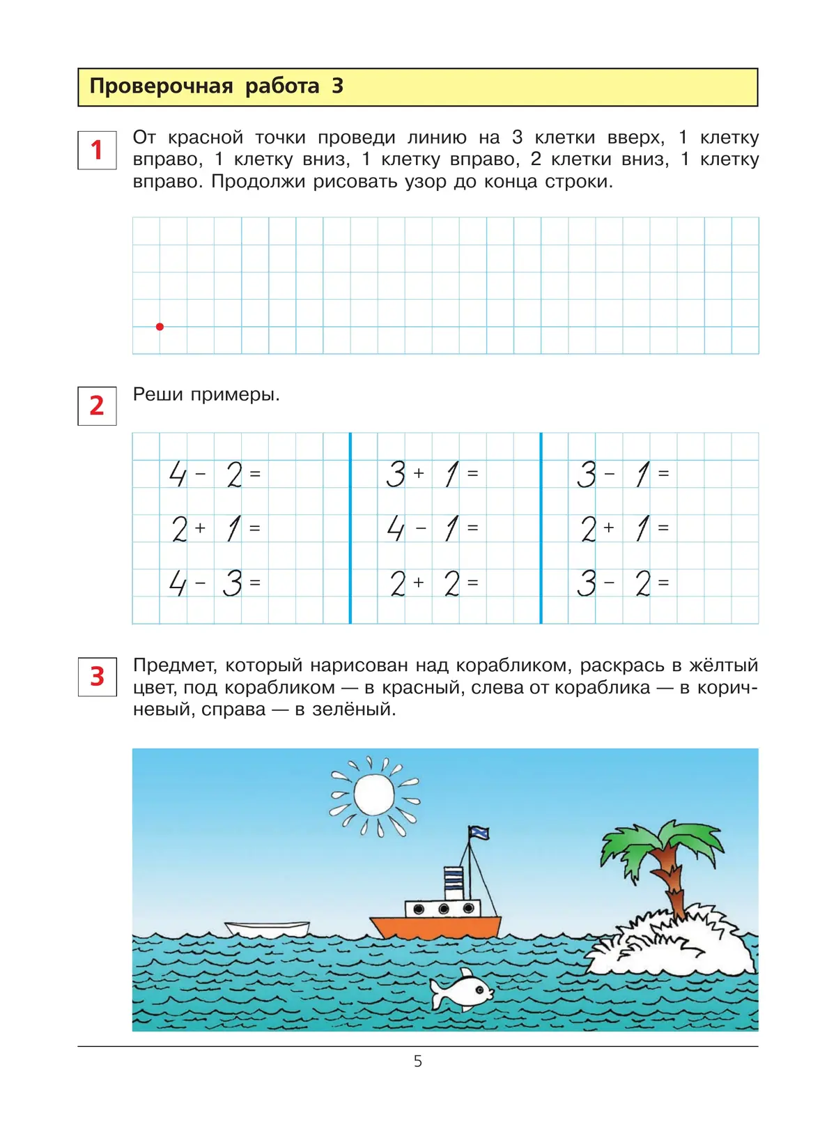 Проверочные работы по математике позволят определить уровень преддошкольной подготовки детей 6—7 лет по темам «Количество и счет», «Величина», «Ориентирование в пространстве», «Ориентирование во времени», «Логические задачи» в соответствии с программой «Формирование элементарных математических представлений у дошкольников».