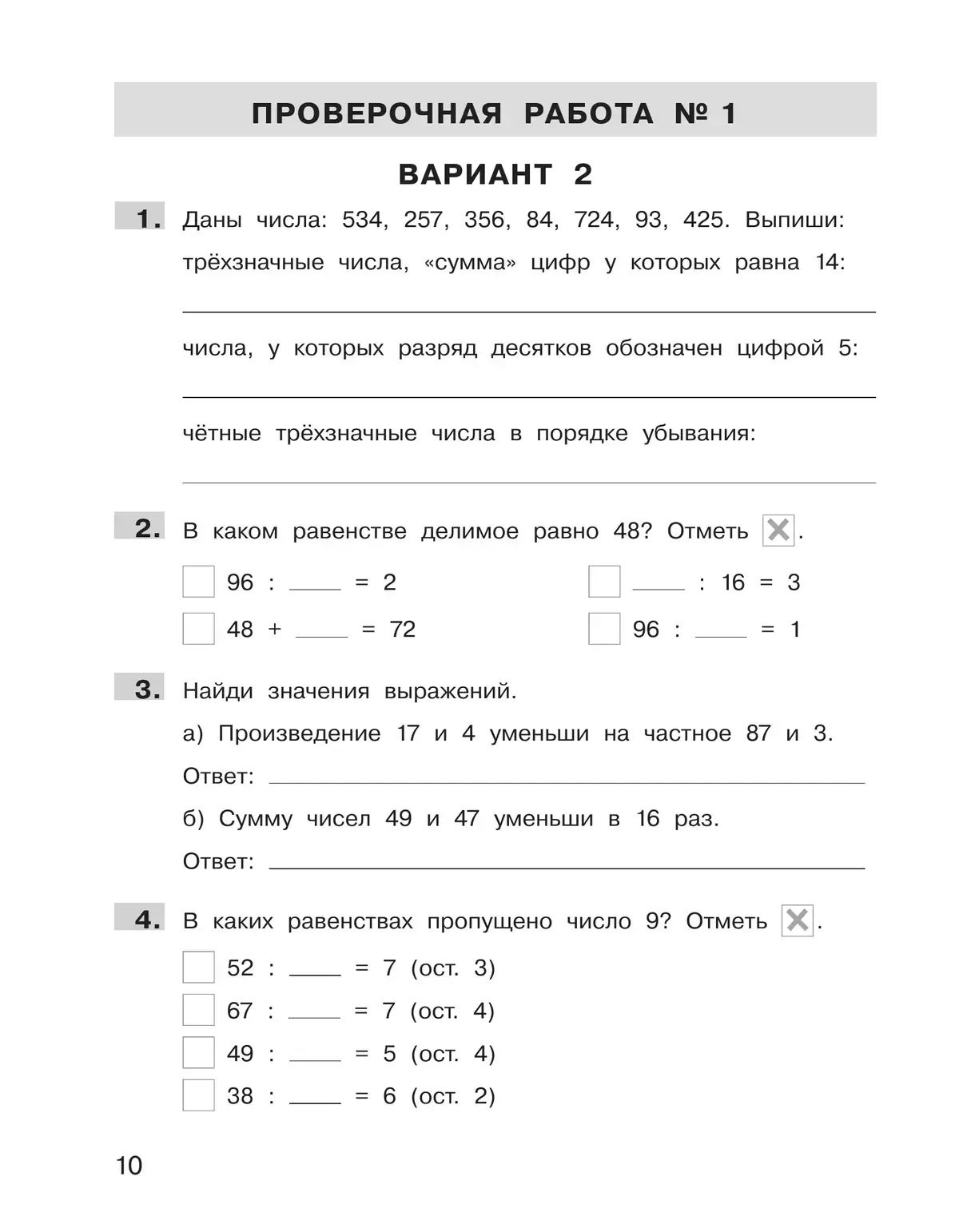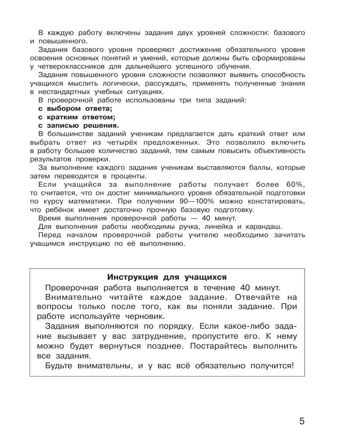 Учебное пособие предназначено для подготовки к итоговой аттестации в 4 классе. Предлагаемые диагностические работы соответствуют планируемым результатам стандарта и требованиям к математической подготовке четвероклассников. Цель пособия — систематизация, структурирование и углубление знаний по курсу математики 4 класса.