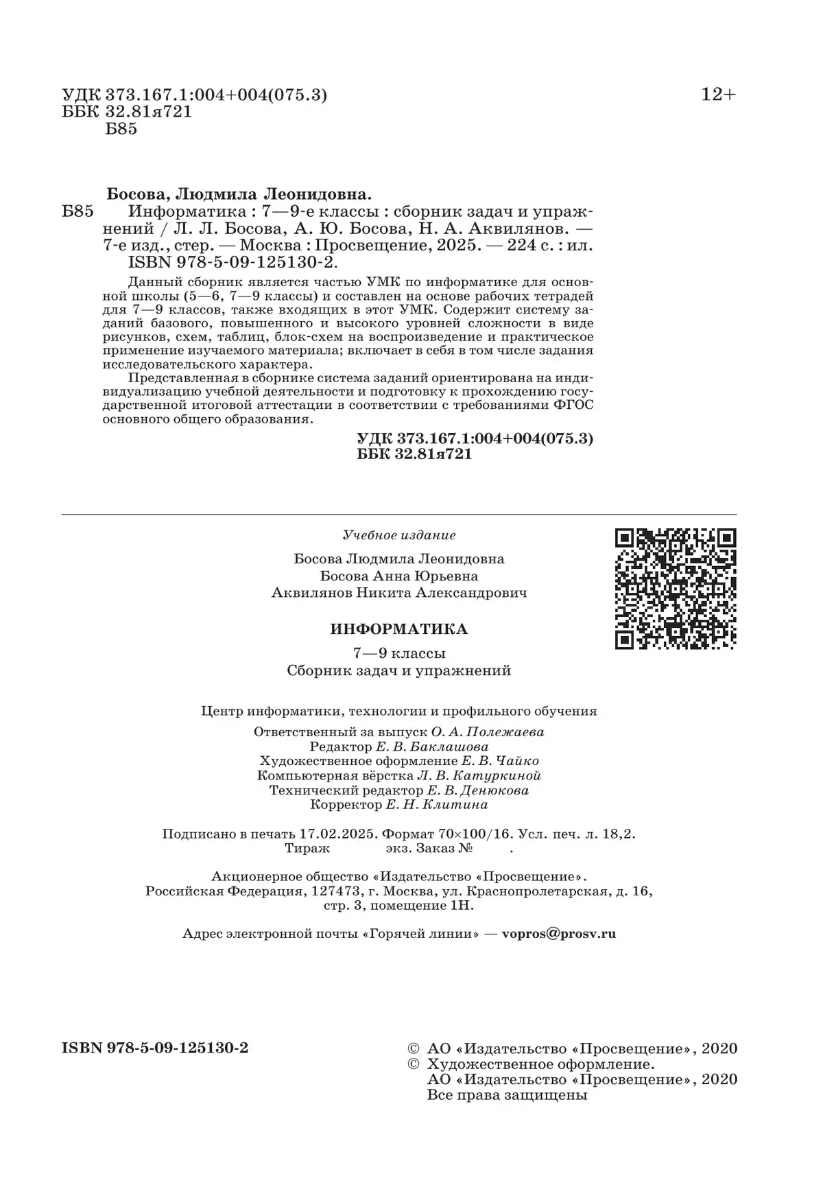 Данный сборник является частью УМК по информатике для основной школы (5-6, 7-9 классы) и составлен на основе рабочих тетрадей для 7-9 классов, также входящих в этот УМК. Содержит систему заданий базового, повышенного и высокого уровней сложности в виде рисунков, схем, таблиц, блок-схем на воспроизведение и практическое применение изучаемого материала; включает в себя в том числе задания исследовательского характера.