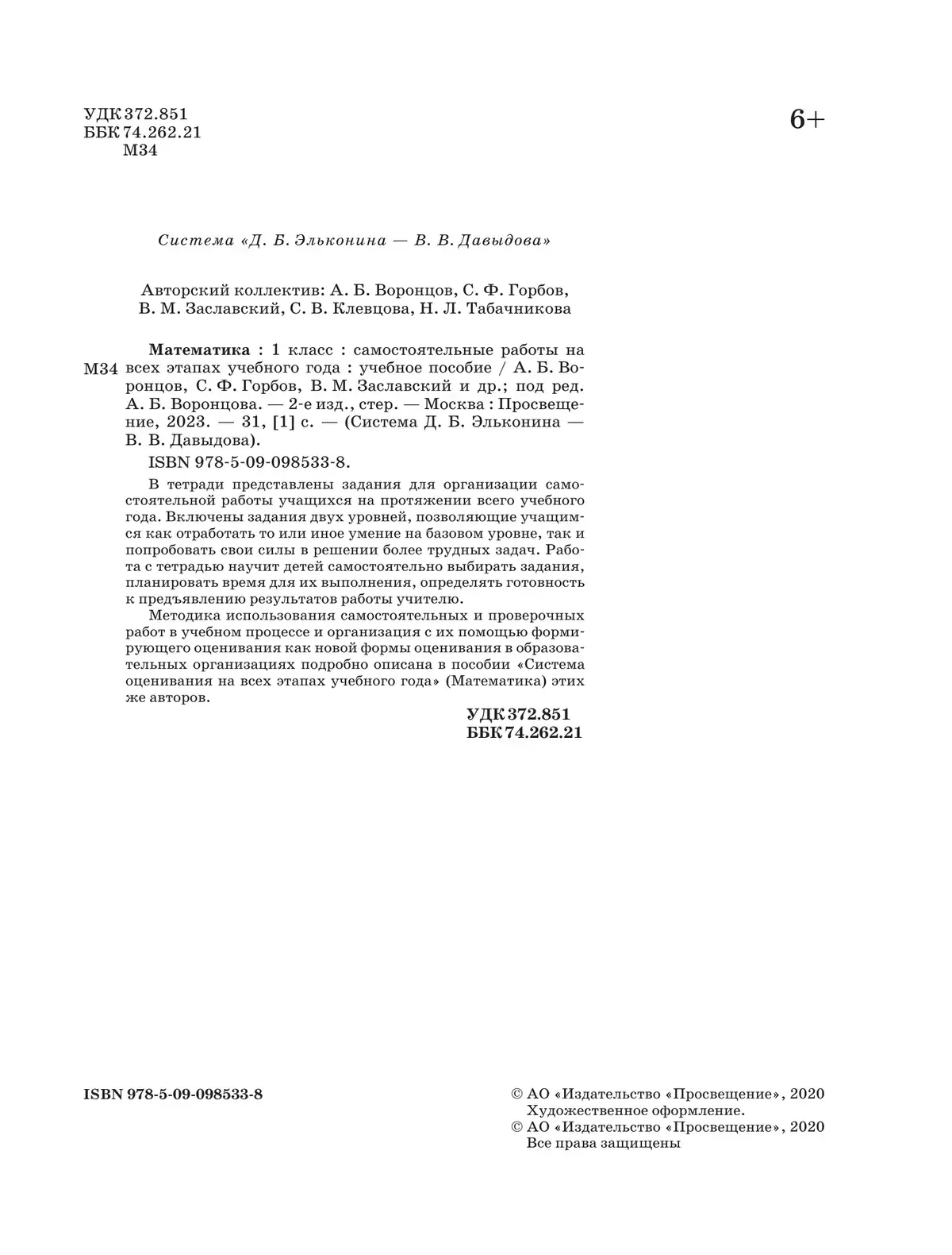 Математика 1 класс. Самостоятельные работы на всех этапах учебного года