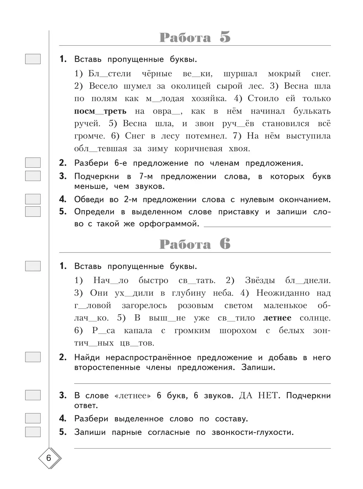 В конце тетради даны обучающие итоговые работы полного цикла, близкие по структуре и уровню заданий к требованиям Всероссийской проверочной работы по русскому языку за курс начальной школы.