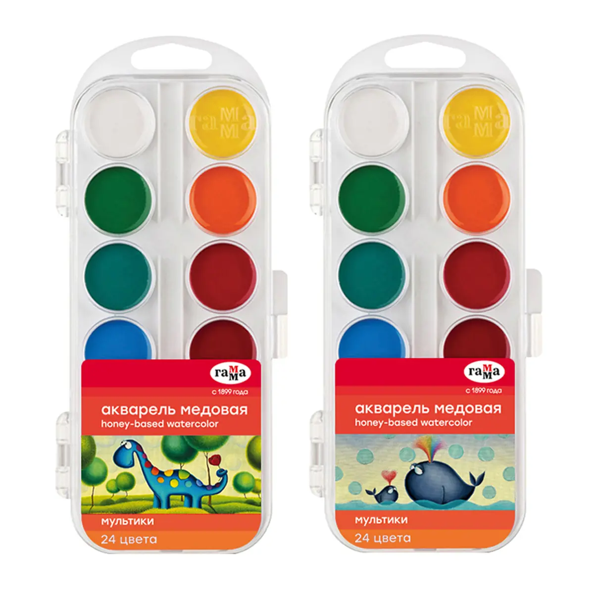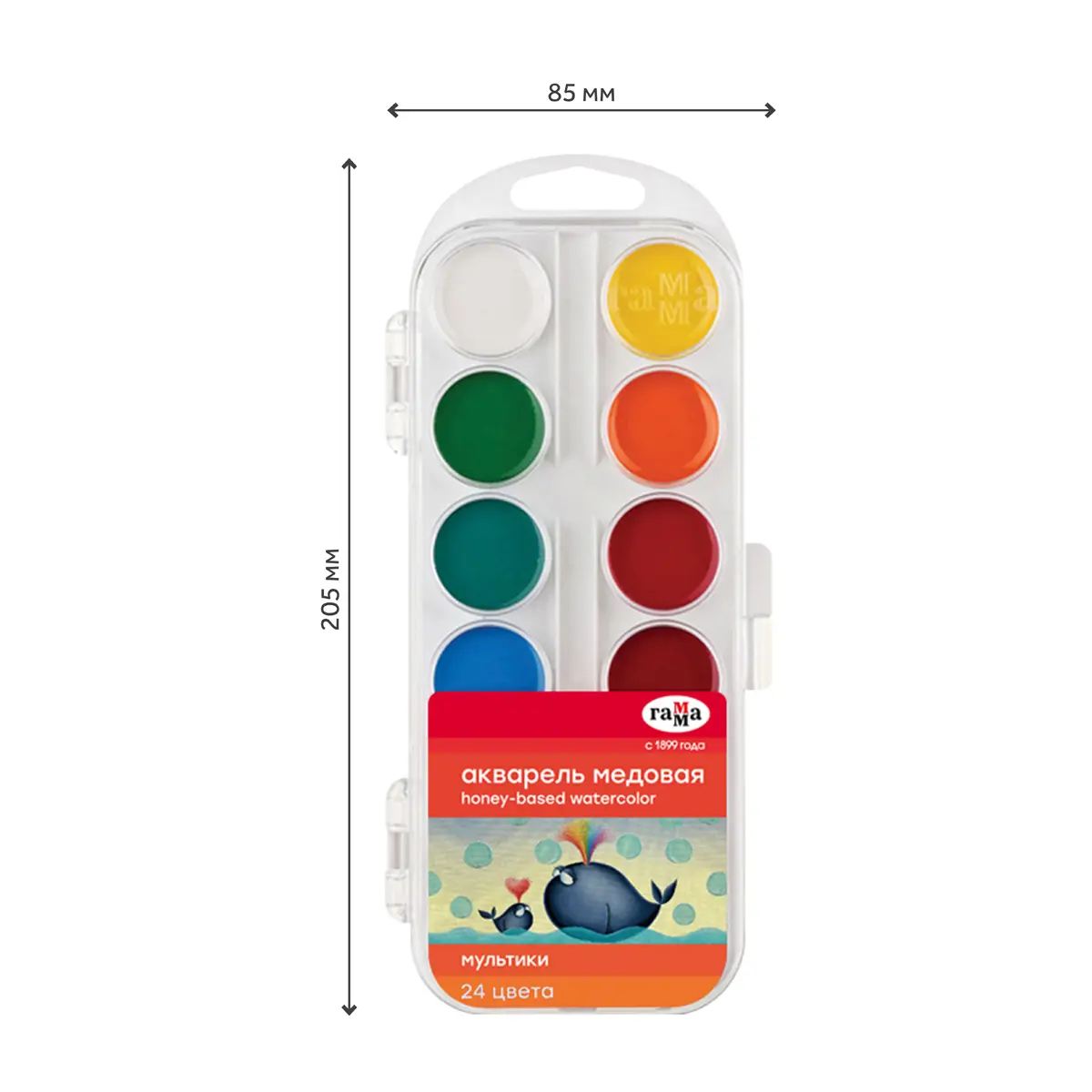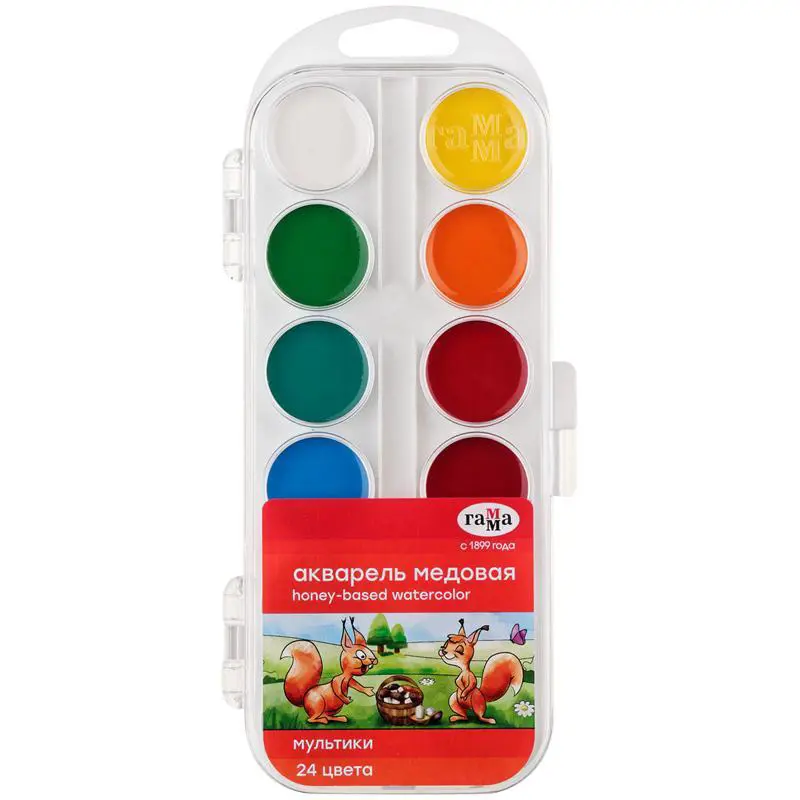 Акварель медовая. Гамма "Мультики". 24 цвета, б/кисти, пластиковый корпус