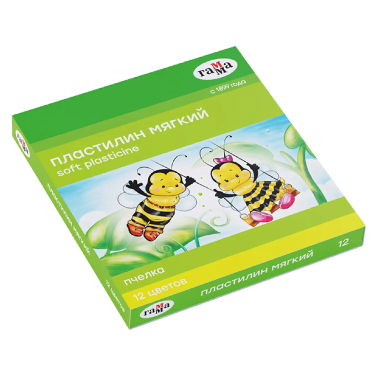 Пластилин восковый мягкий. Гамма. "Пчелка". 12 цветов, 180г, стек, упаковка картон