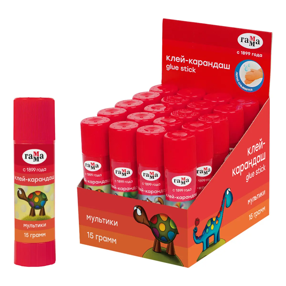 Клей-карандаш ПВП ГАММА серии «Мультики» – отличный помощник на уроках труда и занятиях творчеством. Вес – 15 граммов. Быстросохнущий клей белого цвета легко наносится и распределяется по поверхности, оставляет тонкий и ровный слой, что позволяет расходовать его экономично. Предназначен для склеивания бумаги (в том числе и фотобумаги), картона, ткани. Не оставляет следов на одежде и легко смывается водой. Клей производится на основе натуральных ингредиентов, не содержит растворителей, поэтому безопасен для детей. Круглый корпус удобно держать в детской руке. Клей поставляется в дисплей-боксах. Цвет клея: белый. Вес: 15 г. Упаковка: дисплей-бокс.