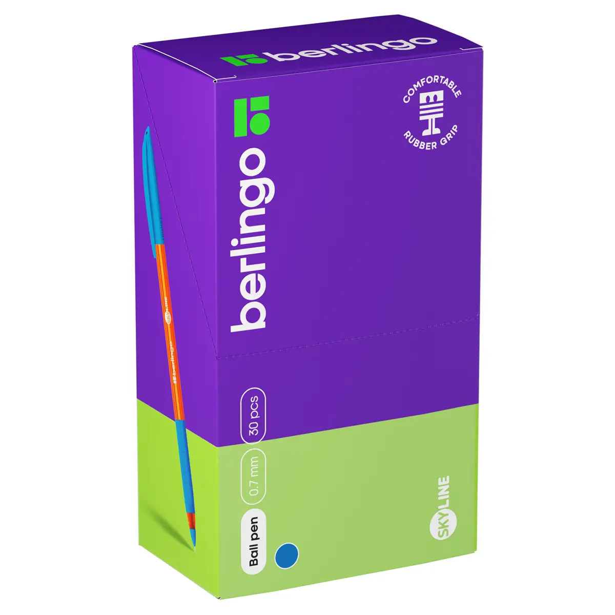 Ручка шариковая. Berlingo "Skyline". 0,7мм, светло-синяя, игольчатый стержень, грип