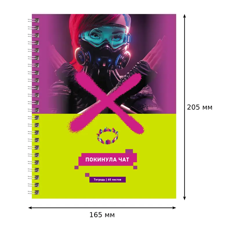 Тетрадь BG серии «Дети интернета» формата А5 (165*205 мм) на гребне состоит из 60 листов. Внутренний блок – офсетная бумага плотностью 60 г/м², белизна – 100%, линовка – клетка. Обложка тетради изготовлена из мелованного картона и выполнена в ярком современном дизайне. Количество листов - 60; линовка - клетка; формат тетради - А5 (165*205 мм); крепление - гребень/спираль; материал обложки - мелованный картон.