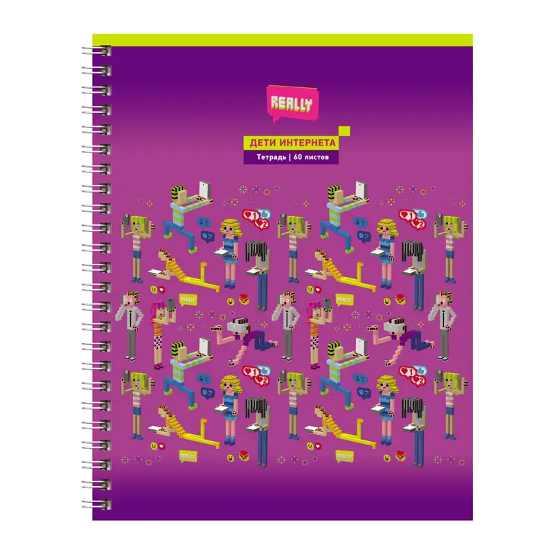 Тетрадь 60 листов на гребне, клетка, обложка мелованный картон, блок офсет, белизна 100%. BG "Дети интернета"