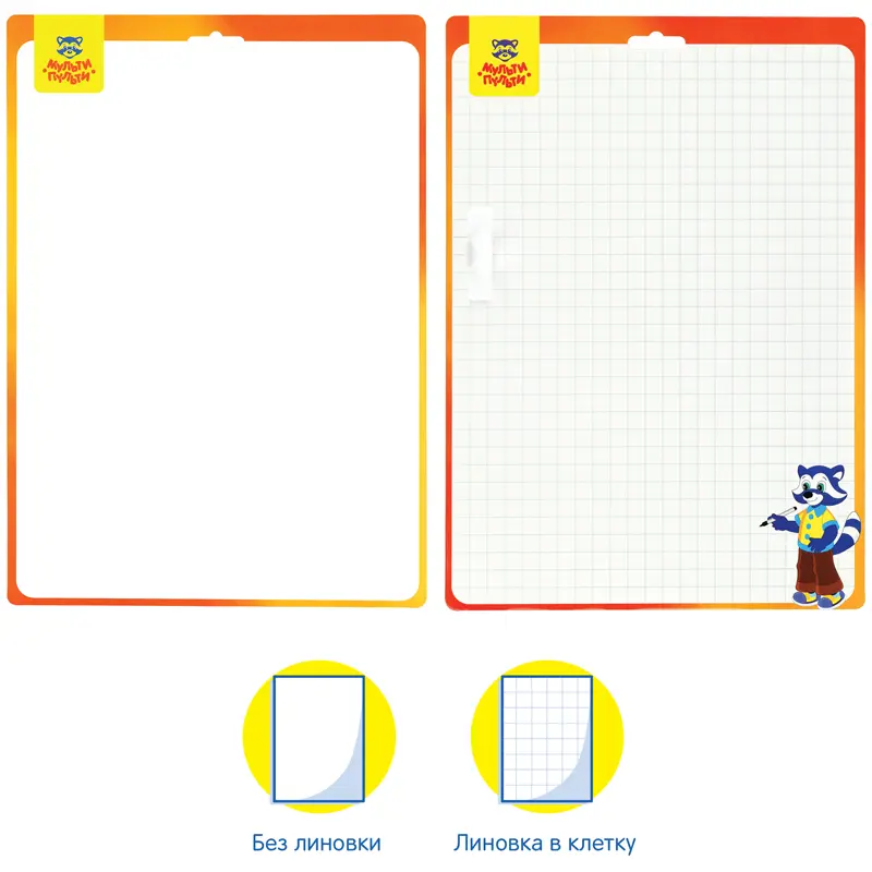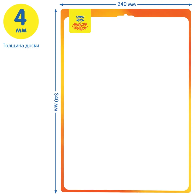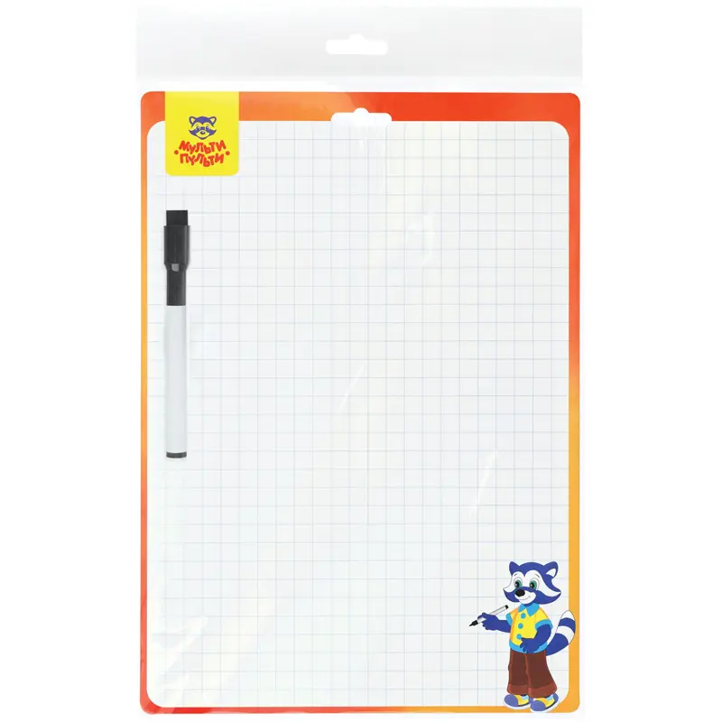 Набор для рисования и творчества «Мульти-Пульти» «Доска для рисования с маркером» – отличный помощник для письма и рисования. Двусторонняя доска размером 240*340 мм поставляется в комплекте с маркером и встроенной в него губкой. Необходимо использовать только специальные маркеры для маркерных досок, надписи стирать сухой губкой. Срок годности 36 месяцев. Упакован в пакет с европодвесом.