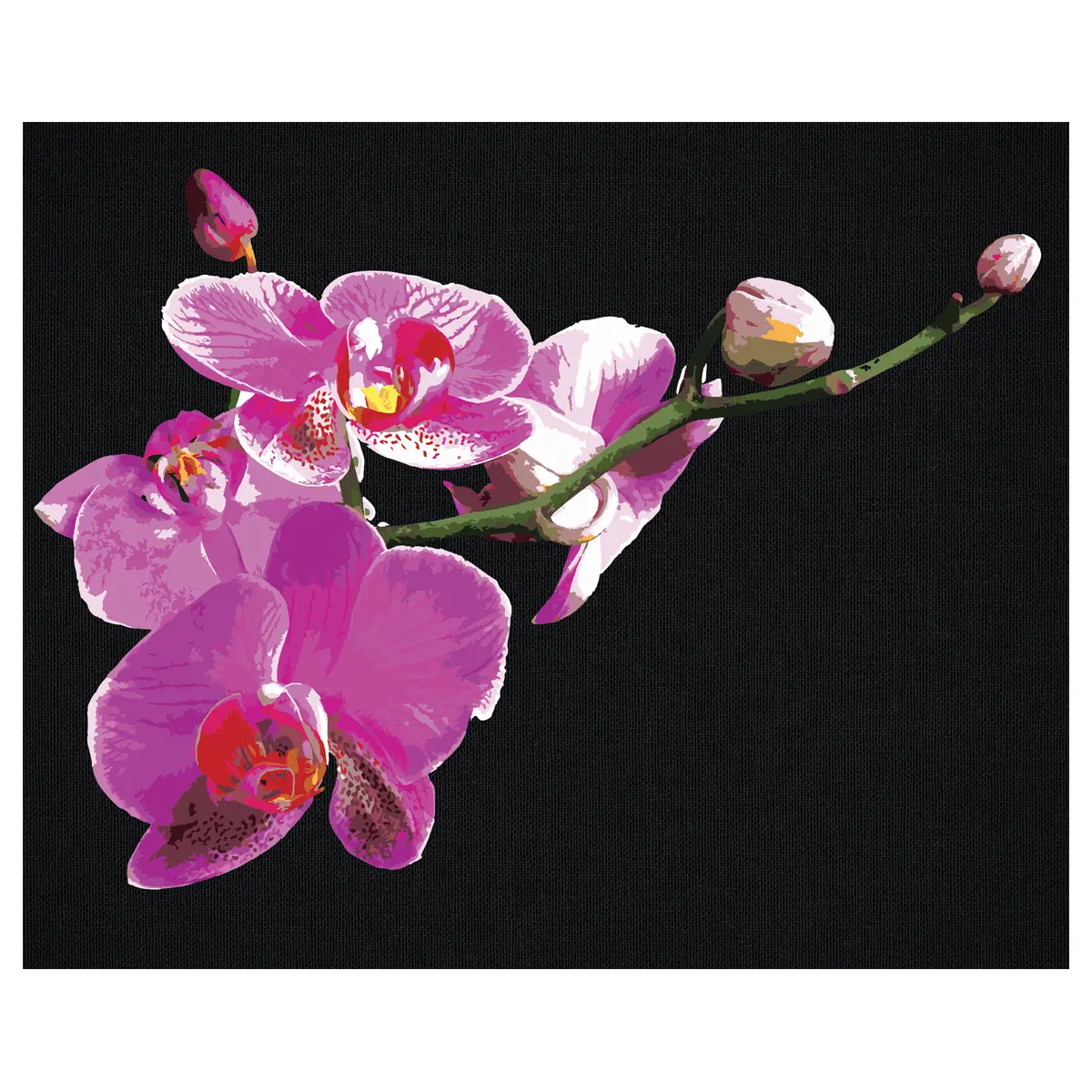 Картина по номерам на черном холсте 40х50 на подрамнике. "Цветы орхидеи". ТРИ СОВЫ