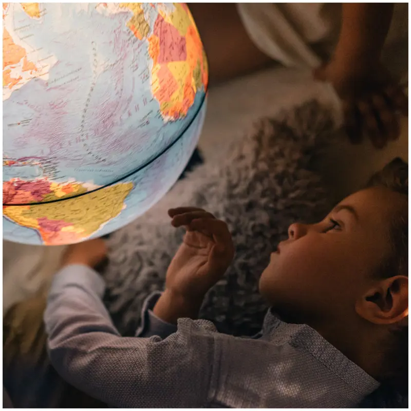 Хотите совершить путешествие в космос, вокруг Земли и даже сквозь века? С интерактивным глобусом Globen почувствовать себя исследователем и ученым сможет каждый. А компанию вам составят обаятельные герои: всезнайка Ариша, ее любознательные братья Тема и Митя и их питомцы — пес Астор и кошка Ириска. С помощью интерактивного глобуса Globen далекие звезды, редкие животные, диковинные растения, моря и океаны станут ближе. Совсем близко — на расстоянии вытянутой руки! Все, что вам понадобится, — это интерактивный глобус Globen и ваш смартфон или планшет. После загрузки приложения наведите камеру гаджета на глобус Globen — и путешествуйте с помощью технологии дополненной реальности. Можно полететь в космос и поближе рассмотреть любую из планет Солнечной системы, а можно спуститься в глубь земных недр и узнать, из чего состоит наша Земля. На ваших глазах оживет толстокожий морж, забавная панда, красавец снежный барс и другие обитатели морей и океанов, вы увидите пузатый баобаб, высоченную секвойю, дерево, на котором растет шоколад, и другие удивительные растения, побываете на Монблане, в Сахаре, Мариинской впадине и не только! Обо всем этом весело и понятно расскажут наши герои. А еще с интерактивным глобусом Globen можно узнать о 195 странах мира, их столицах, формах правления, языках, на которых там говорят, и основных достопримечательностях. А благодаря добавленным функциям виртуальной реальности (VR) можно почувствовать себя героем компьютерной игры или увлекательного квеста, в ходе которого ребёнок узнает и откроет для себя много нового о космическом пространстве, нашей планете и её обитателях. Можно примерить на себя роль космонавта, выйти в открытый космос и внимательно изучить каждую из планет Солнечной системы. Для того чтобы насладиться изображением в 360°, понадобится ваш смартфон и специальные очки, которые вы найдёте в коробке с глобусом. Также функции VR доступны и без специальных очков — с помощью смартфона или планшета. Целая энциклопедия в одном глобусе Globen — будет интересно как детям, так и взрослым. Поверьте, нашей планете есть чем вас удивить! ВАЖНО! Приложение IQ Globe не содержит рекламы и без ограничения срока. Приложение постоянно дополняется новой информацией и локациями — не забывайте обновлять его. Очки виртуальной реальности (VR) входят в комплект.