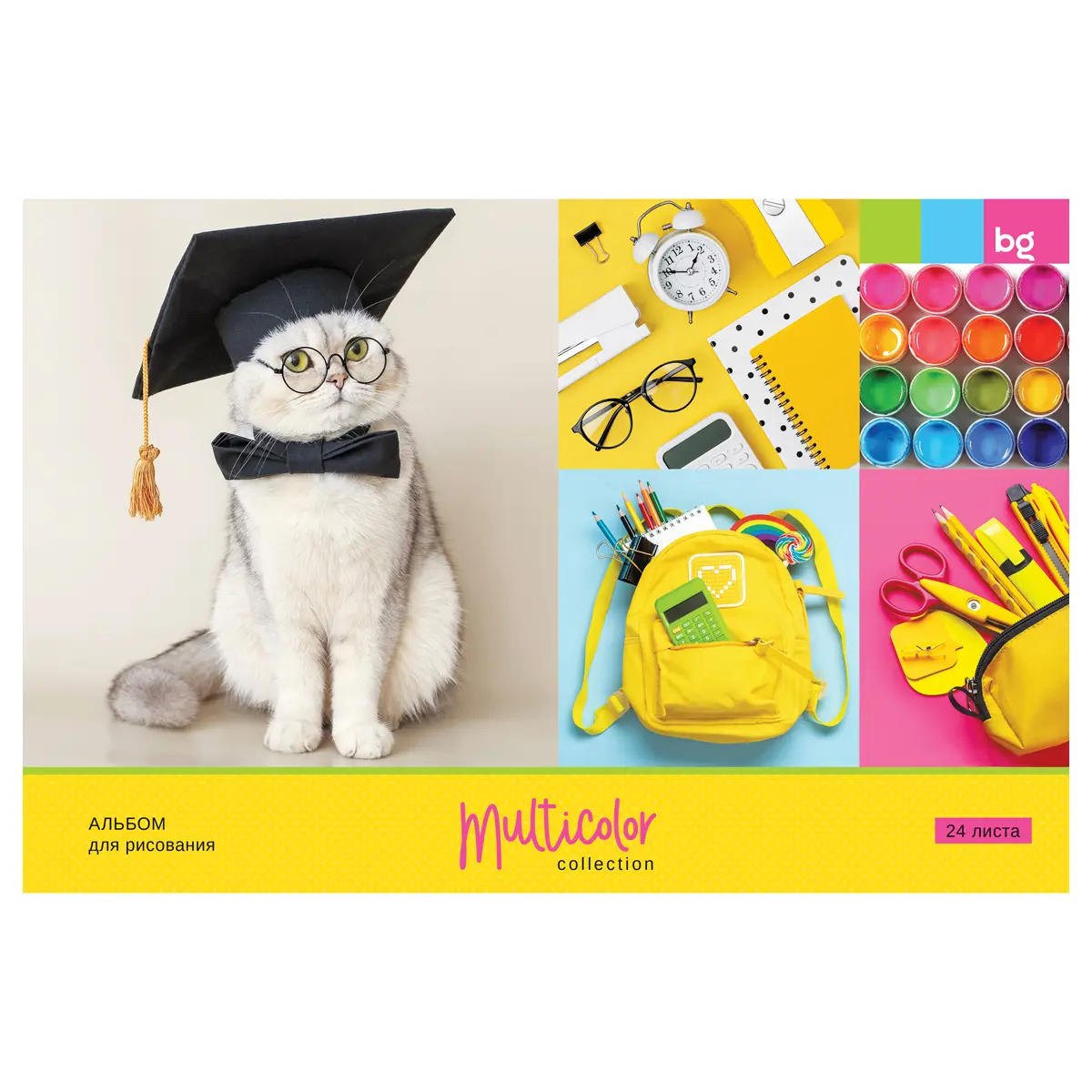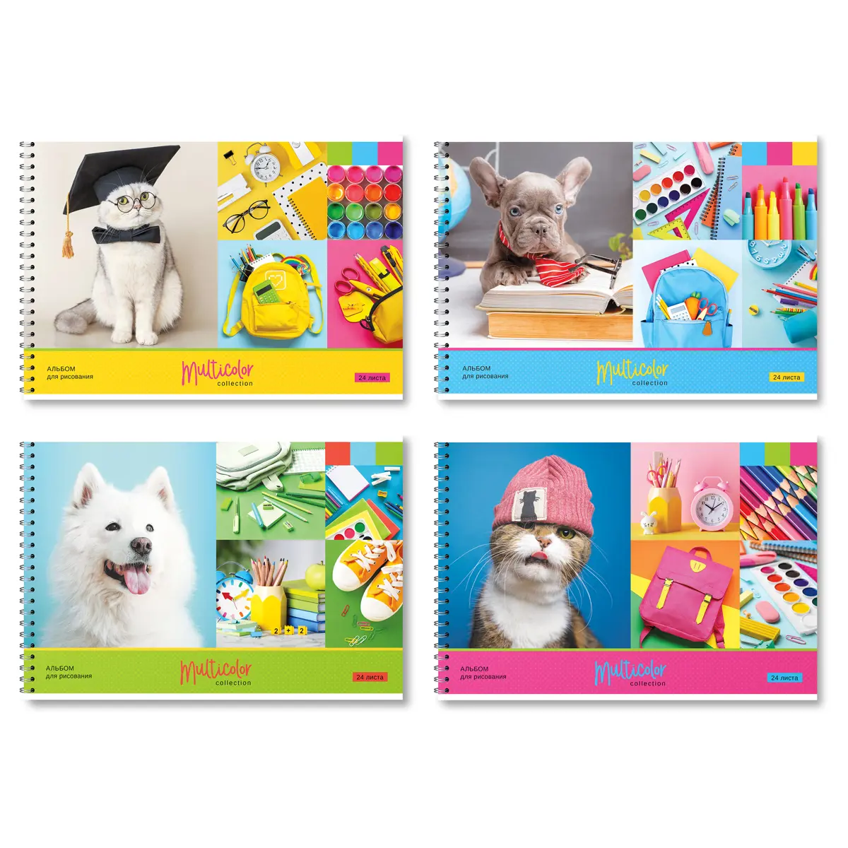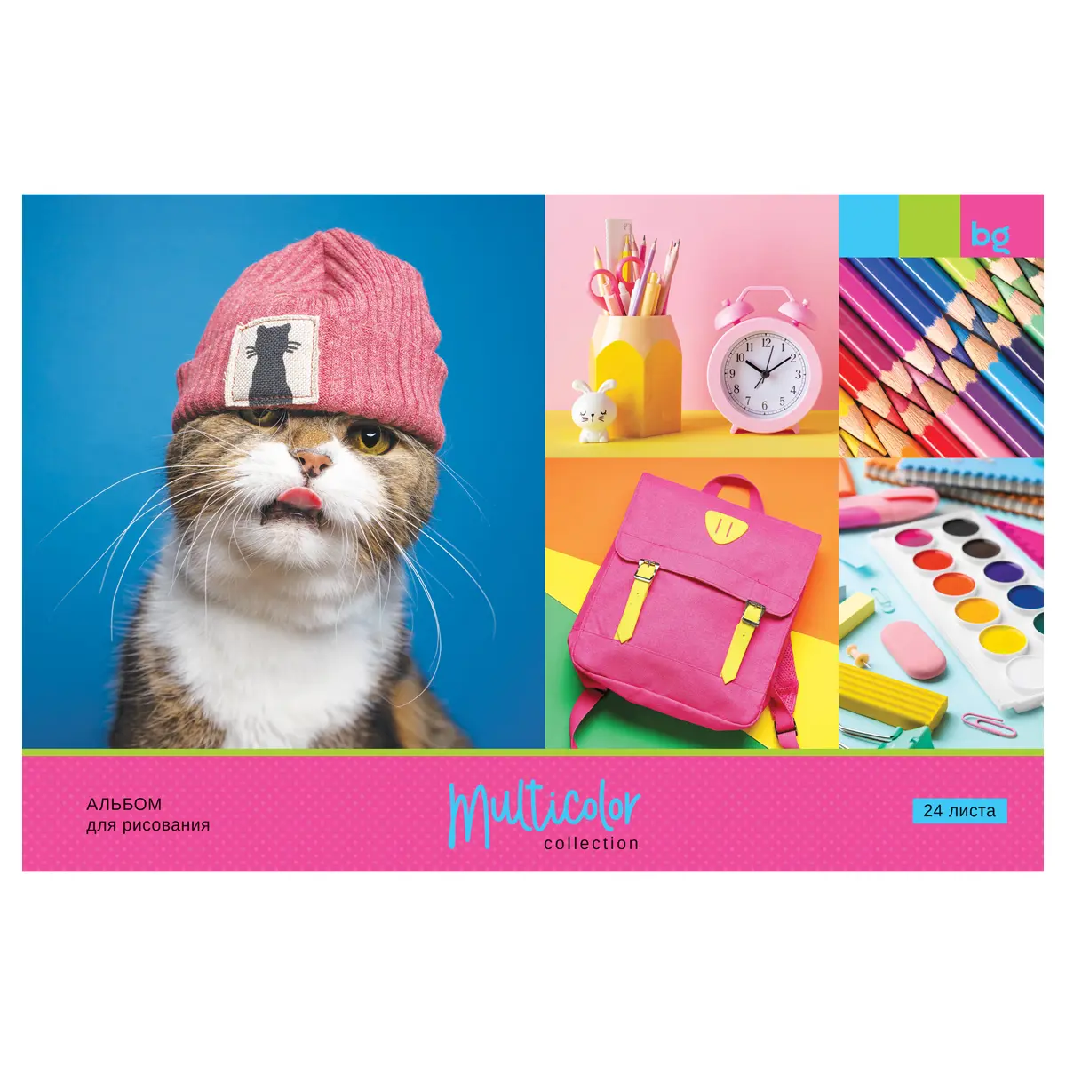 Альбом для рисования А4, 24 л., гребень, обложка картон. BG "Multicolor", ассорти