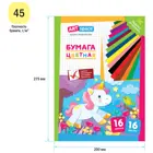 Бумага цветная, А4, 16 л., 16 цв., газетная, односторонняя, на скобе. Единорог