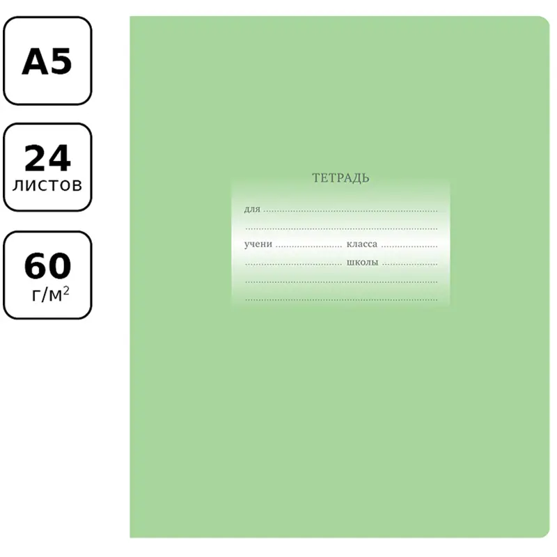 Тетрадь 24 листа, линия, обложка мелованный картон. "Первоклассная". Светло-зеленая