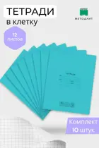 Тетрадь 12 листов, клетка, обложка мелованный картон. "Отличная", бирюзовая, 70г/м2. (10 шт.)