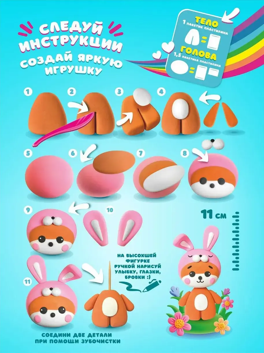 Не липнет к поверхностям и не оставляет следов на рабочей поверхности.Готовыми фигурками можно играть и ставить целые представления.Такие наборы развивают творческое мышление. внимание, усидчивость, стимулируют развитие мелкой моторики и цветового восприятия.