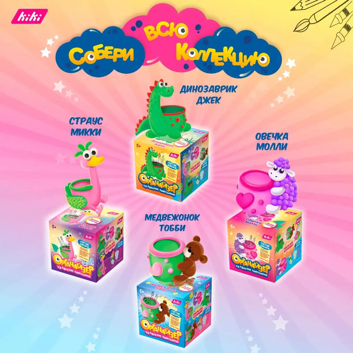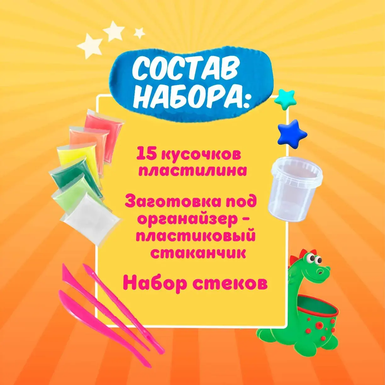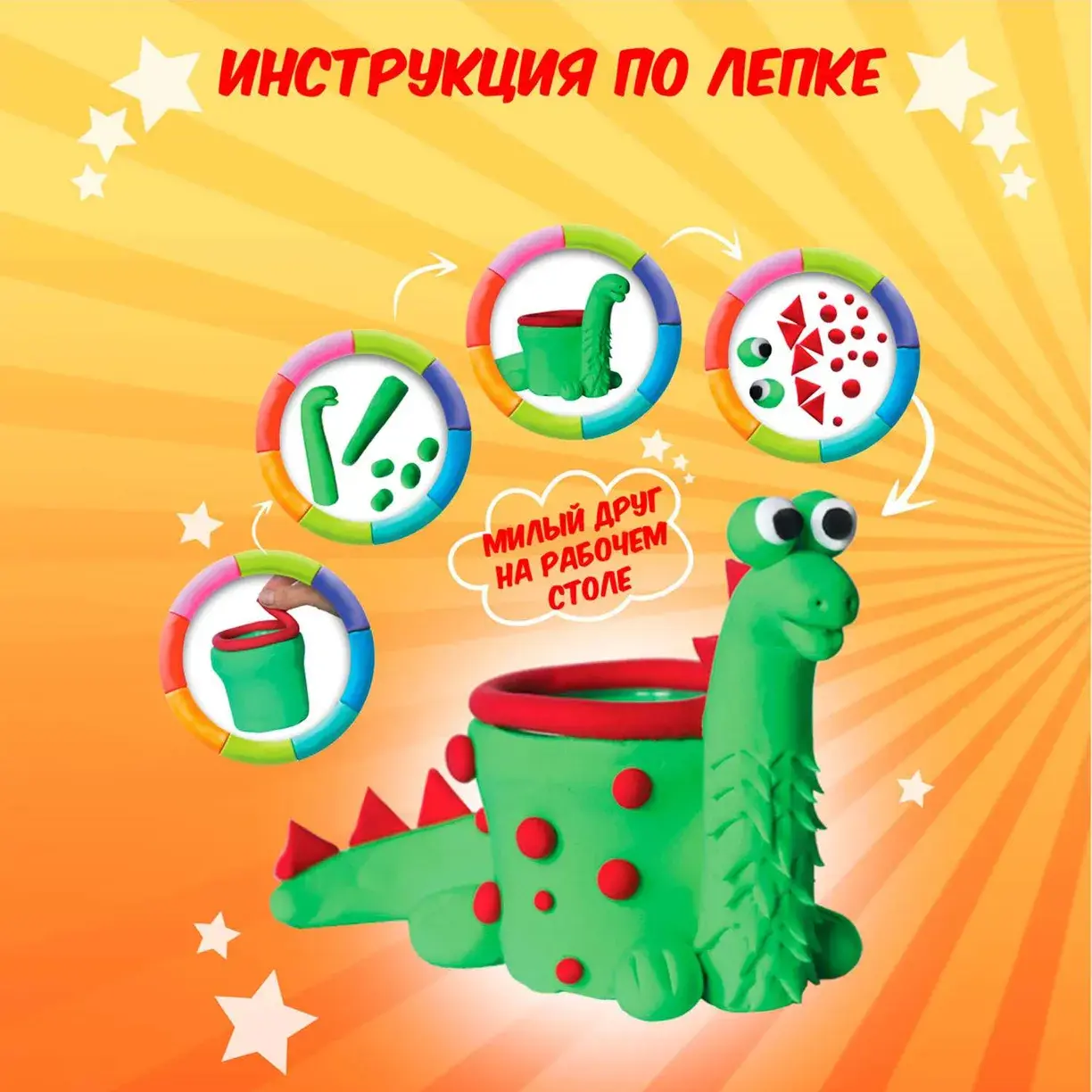 Полезный набор для лепки из пластилина Настольный органайзер. С его помощью ребенок может сам слепить веселый и практичный стакан для карандашей! Поделка из пластилина: облепи баночку, слепи персонажа, храни ручки, фломастеры, украшения, сладости.