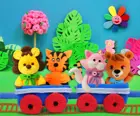 Можно сделать фигурки: зайчика, дракона, котика, кролика, любое животное, куклу, а также ёлку, снеговика, создать картину цветок. После высыхания игрушками из пластилина можно играть не боясь повредить поделки.