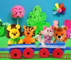Можно сделать фигурки: зайчика, дракона, котика, кролика, любое животное, куклу, а также ёлку, снеговика, создать картину цветок. После высыхания игрушками из пластилина можно играть не боясь повредить поделки.