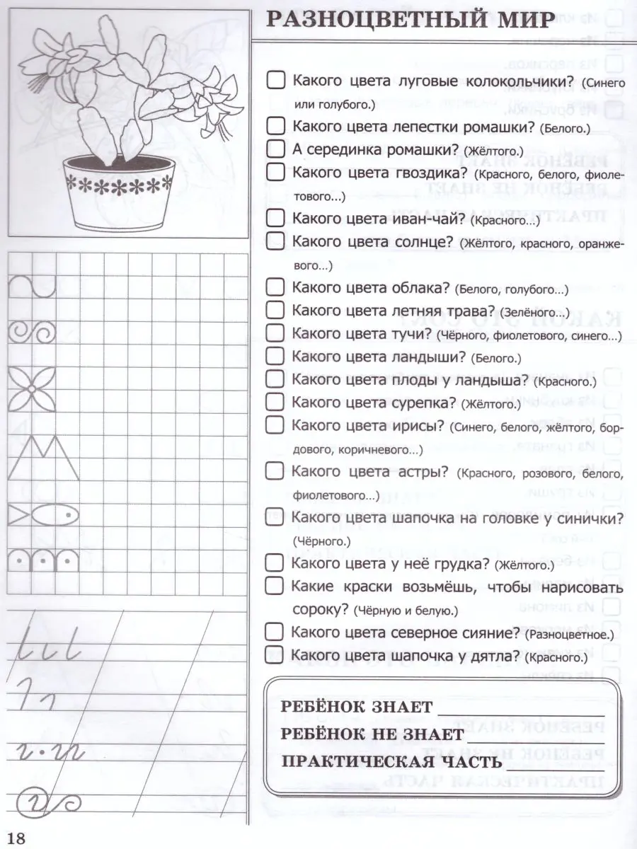 Задача данного универсального пособия - помочь детям систематизировать свои знания, научиться логично строить ответы на поставленные вопросы; родителям дать возможность проверить готовность ребёнка к школе, профессионально задавая вопросы по всей программе дошкольного образования.
