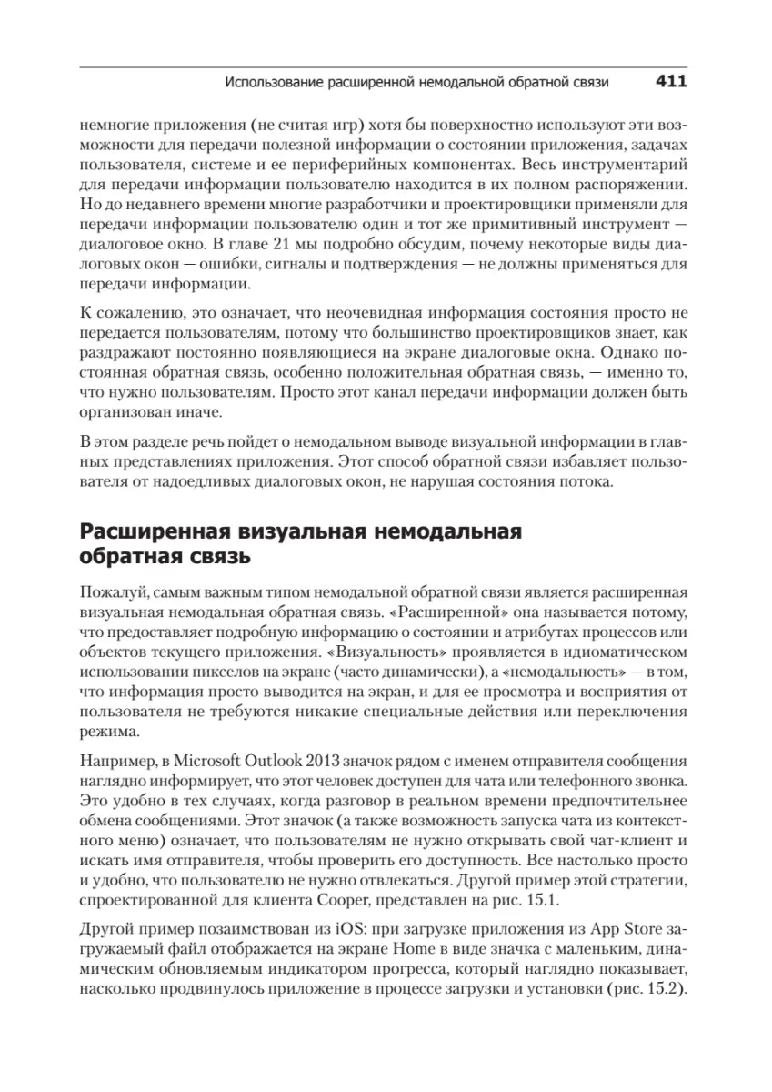 Алан Купер начал работу над первым изданием этой книги 20 лет назад. Он убеждал программистов в том, что пришла пора шагнуть навстречу пользователям и начать писать программы, которые будут им нравиться. В наши дни сложилась совершенно иная ситуация — оцифровка всех видов информации заставила пользователей с головой окунуться в новые технологии. Четвертое издание книги учитывает все изменения в отрасли, произошедшие за последние семь лет, с сохранением всех идей из предыдущих изданий, не потерявших актуальности.Проектирование взаимодействия — это ориентированный на человека подход проектирования интерактивных цифровых продуктов, сред, систем и сервисов. Много внимания уделено проектированию поведения — аспекту, которым традиционные дисциплины проектирования нередко пренебрегают.В этой книге во главу угла ставится целеориентированный подход, при котором основное внимание проектировщиков концентрируется на целях пользователей (то есть на причинах, по которым те используют данный продукт), на их ожиданиях, мировоззрении и склонностях. Именно он позволяет создавать мощные решения, с которыми приятно работать.