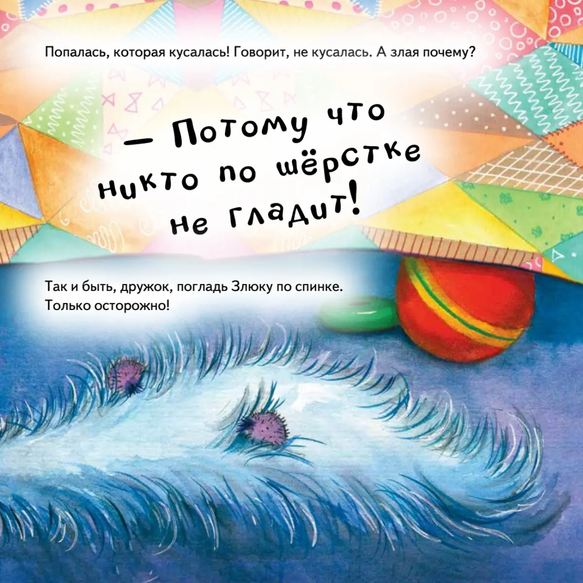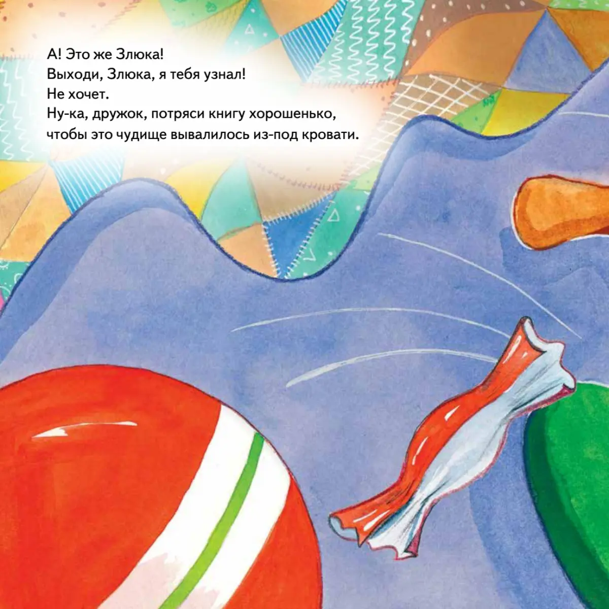 Тс-с-с! Кажется, под твоей кроватью кто-то есть. И этот кто-то что-то ест! Такой мохнатый, зубастый, глазастый! Смотри, это же Злюка! Неужели она хочет тебя напугать? Не бойся - она сама тебя боится! Давай с ней подружимся - погладим её по спинке, пощекочем, поиграем в прятки, а потом убаюкаем и уложим спать.Эта книжка-картинка рассмешит любого малыша. С её помощью он весело проведёт время, научится справляться со своими страхами и подготовится ко сну. Книга рекомендована для чтения взрослыми детям.