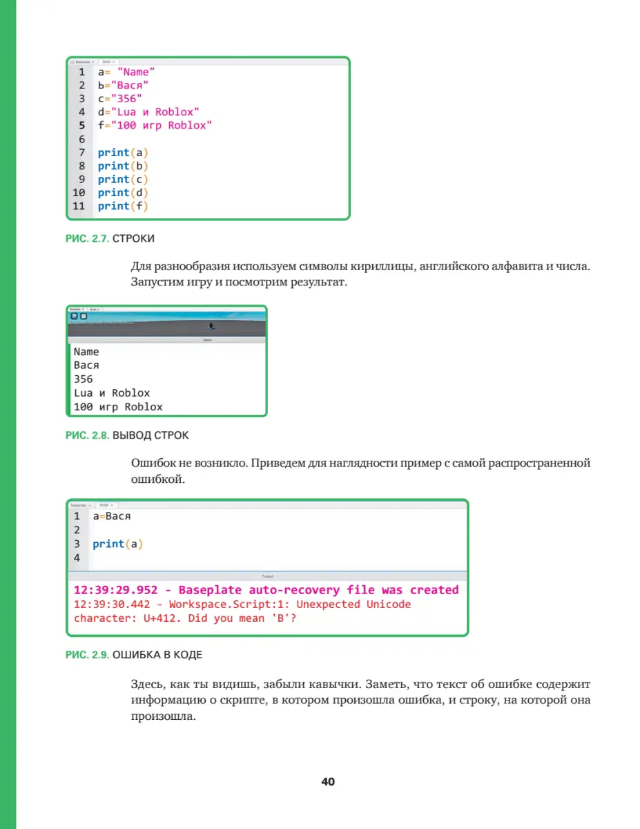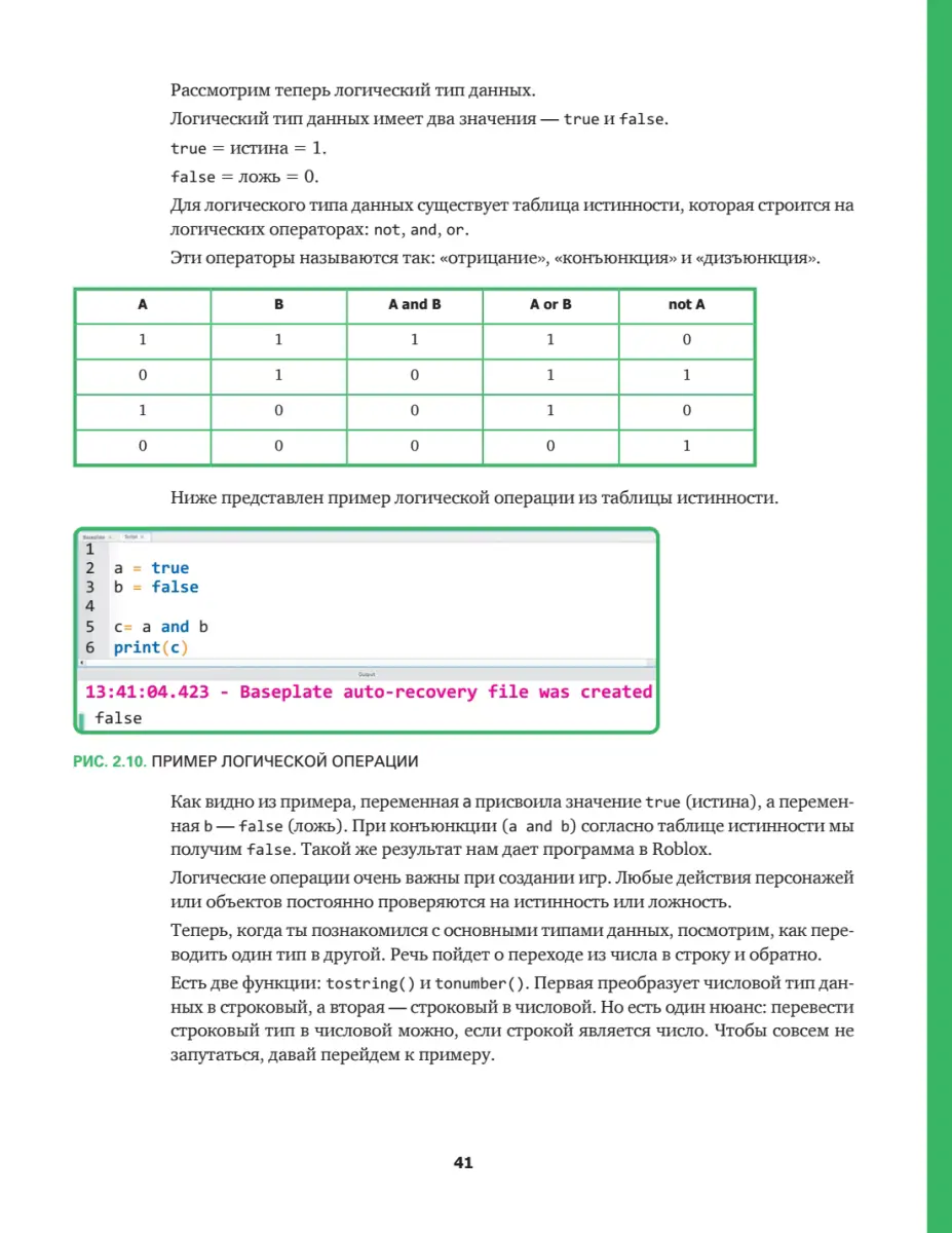 Что такое Roblox? Это красочная компьютерная платформа для создания и публикации своих игр. Мир Roblox изо дня в день становится все популярней, и ты можешь стать его частью! Если ты мечтаешь стать геймдизайнером и создать свою игру, но не знаешь, с чего начать, эта книга поможет тебе! - Не требуется предварительных знаний — ты можешь начать делать игру сразу! - Мир Roblox интуитивно понятен и очень нравится детям и взрослым. - В книге даны очень подробные пошаговые инструкции по установке и работе с Roblox. - Есть введение в программирование и язык Lua. - Наглядные инструкции по созданию игровых объектов (каждое действие иллюстрируется скриншотом). - Интересные задания для самостоятельной работы. «Roblox: играй, программируй и создавай свои миры» станет верным другом, поможет в кратчайшие сроки освоить игровую среду, удивлять друзей и родителей крутыми играми и даже заработать! Что изменилось во втором издании книги? В 2023 году вышла новая версия Roblox Studio, поэтому книга была полностью обновлена и доработана. Ты узнаешь о создании ландшафтов, работе с физикой твердых тел, познакомишься с новыми алгоритмами движения объектов в пространстве и новыми возможностями анимации гуманоидов (игроков и NPC).