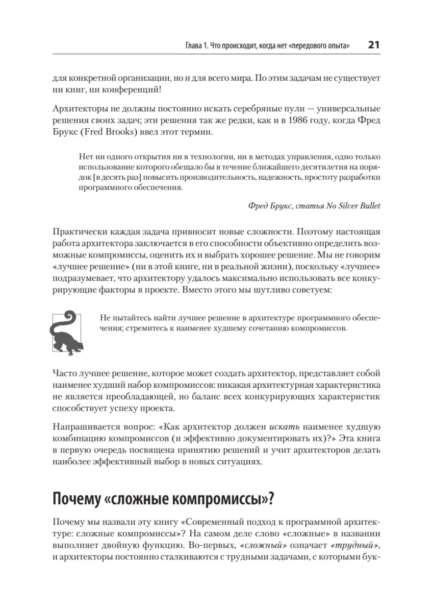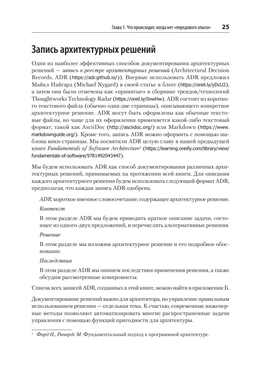 В архитектуре программного обеспечения нет простых решений. Напротив, есть масса сложностей — задач и проблем, для решения которых нет готовых ответов и приходится выбирать между различными компромиссами. Эта книга научит вас критически относиться к компромиссам, связанным с распределенными архитектурами. Опытные архитекторы Нил Форд, Марк Ричардс, Прамод Садаладж и Жамак Дехгани обсуждают стратегии выбора архитектуры, подходящей для тех или иных случаев. История Sysops Squad — вымышленной группы специалистов — позволяет исследовать все аспекты выбора архитектуры: от определения степени гранулярности сервисов, управления рабочими процессами и оркестрации, разделения контрактов и управления распределенными транзакциями до оптимизации таких операционных характеристик, как масштабируемость, адаптируемость и производительность.