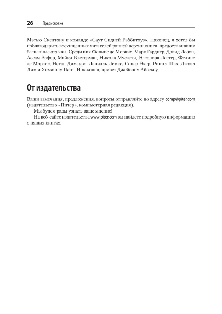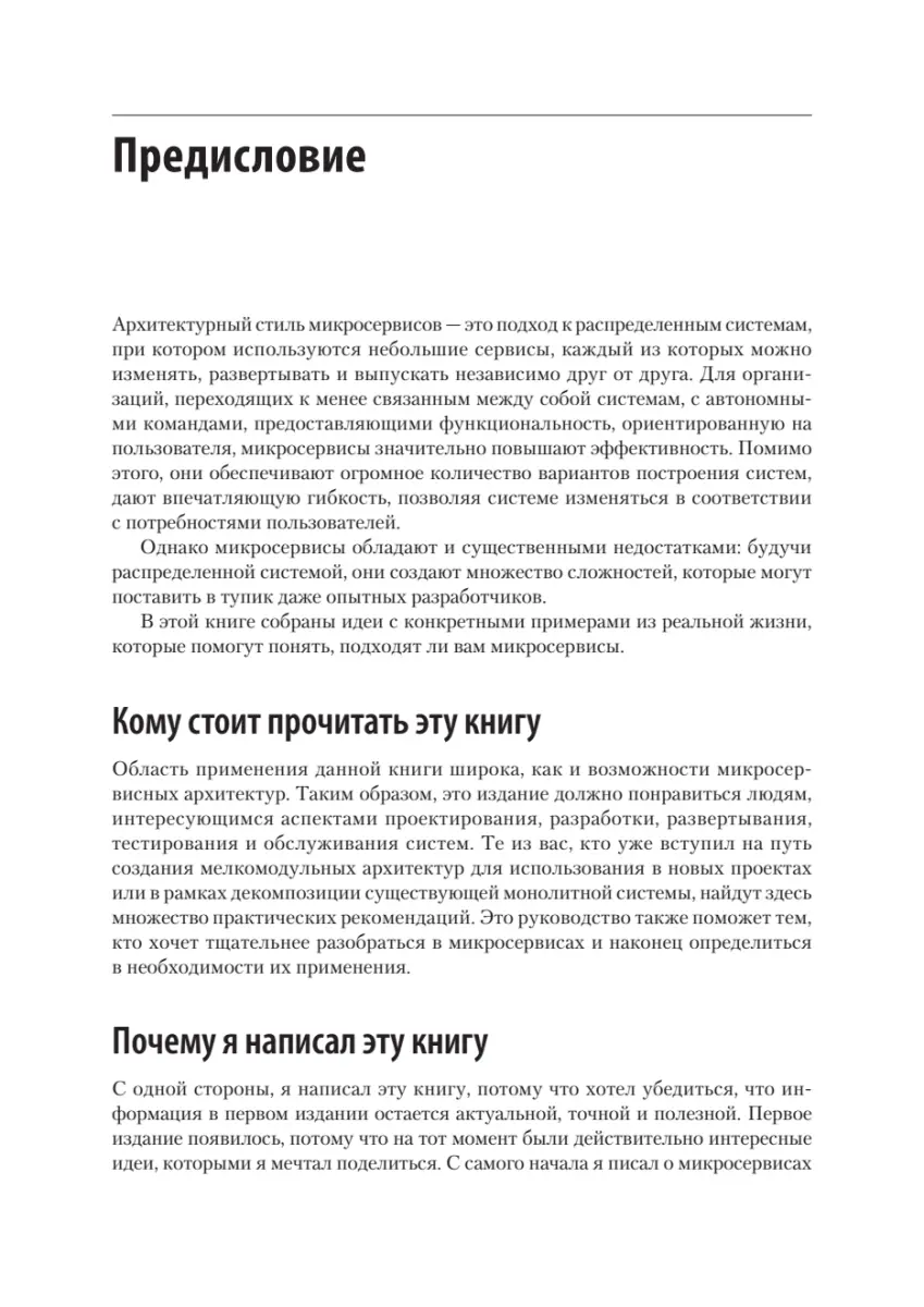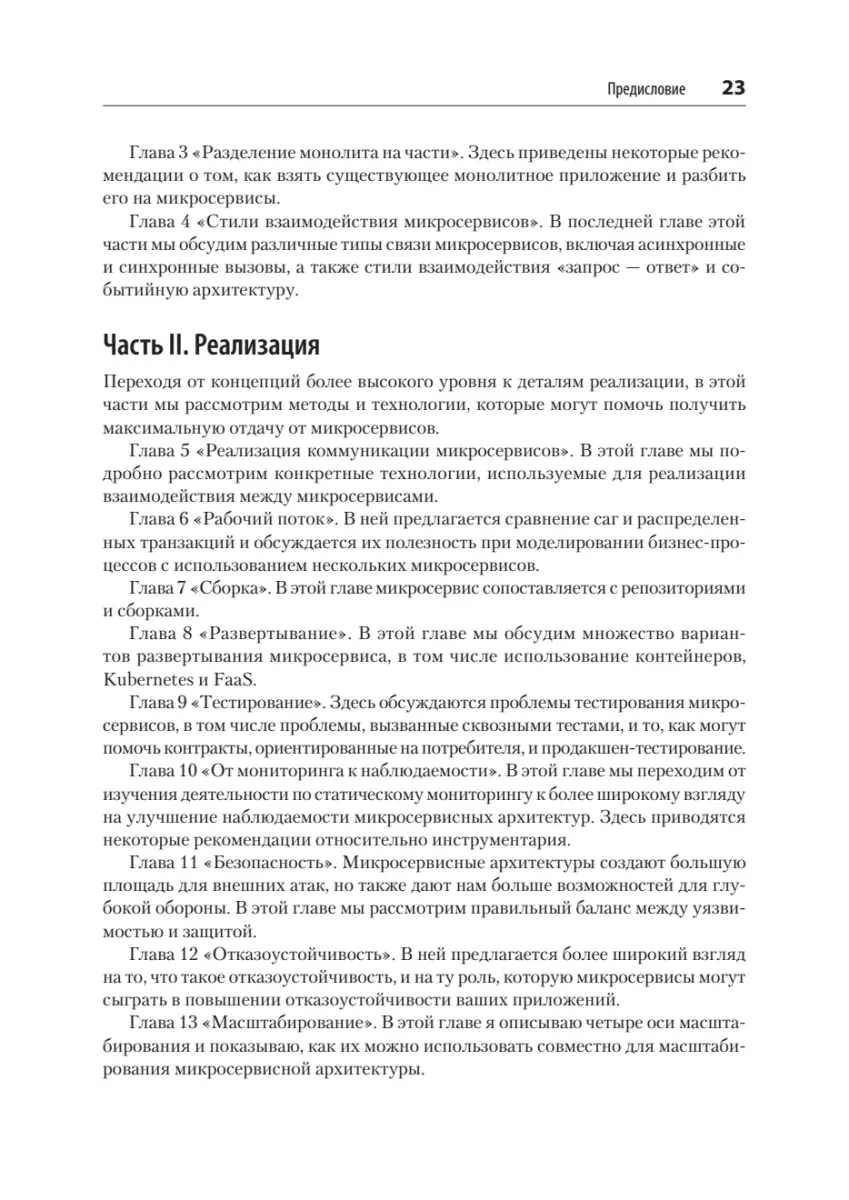 По мере того как организации переходят от монолитных приложений к небольшим автономным микросервисам, распределенные системы становятся все более детализированными. Второе дополненное издание предлагает целостный взгляд на самые актуальные темы, в которых необходимо разбираться при создании и масштабировании архитектуры микросервисов, а также управлении ею. Вы познакомитесь с современными решениями для моделирования, интеграции, тестирования, развертывания и мониторинга собственных автономных сервисов. Примеры из реальной жизни показывают, как получить максимальную отдачу от этих архитектур. Книга будет полезна всем: от архитекторов и разработчиков до тестировщиков и специалистов по эксплуатации.