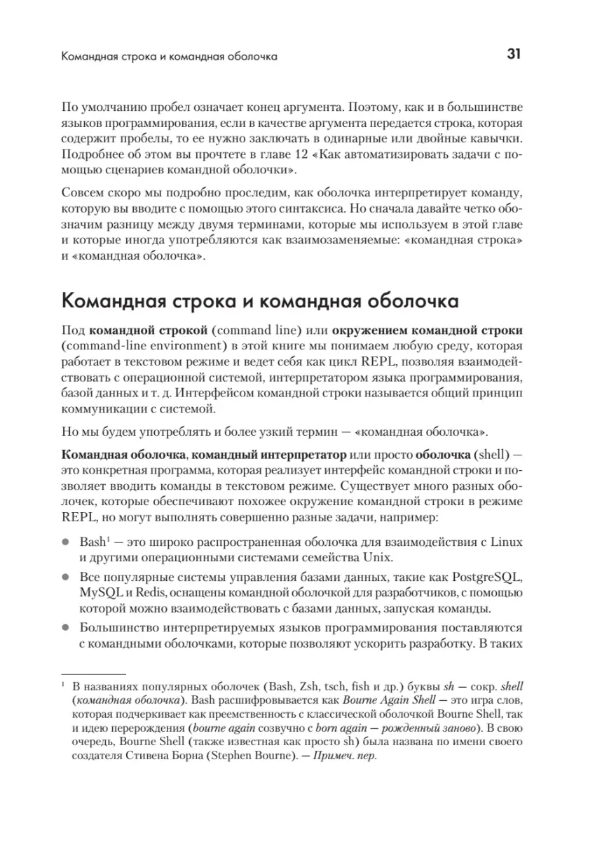 Разработчики всегда стремятся подняться на новый уровень мастерства, но большинство полностью теряется, когда дело доходит до командной строки Linux. С помощью этой книги вы сделаете следующий важный шаг в своей карьере. Большую часть навыков, которые вы получите после ее прочтения, можно сразу же применить на практике, чтобы стать более эффективным разработчиком. Книга написана специально для программистов, а не для системных администраторов Linux. Каждая глава даст достаточно теоретических знаний, чтобы понять, что вы делаете, прежде чем переходить к практическим командам, которые вы сможете использовать в своей повседневной работе в качестве разработчика ПО. По мере прочтения вы быстро освоите основы работы Linux и освоитесь с командной строкой. Овладев основными навыками, вы разберетесь, как применять их в различных контекстах, с которыми столкнетесь как разработчик ПО: создание образов Docker и работа с ними, автоматизация скучных задач сборки с помощью сценариев оболочки и устранение неполадок в продакшен-средах. К концу книги вы сможете с комфортом пользоваться Linux и командной строкой и применять приобретенные навыки в повседневной работе. Это позволит вам экономить время, быстро устранять неполадки и стать мастером работы с командной строкой, к которому обращается вся команда.