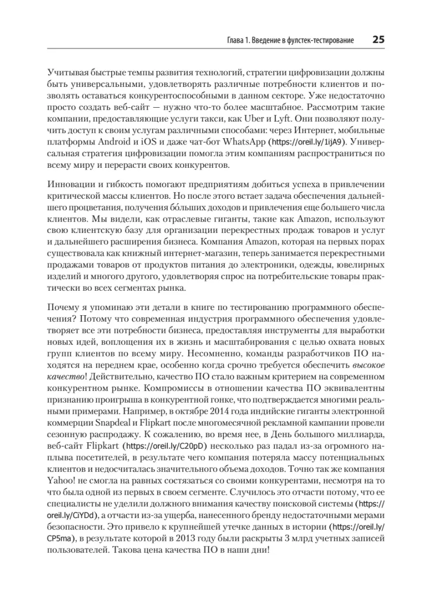 Тестирование — важнейшая задача для создания высококачественного программного обеспечения. Разработчики и инженеры по качеству найдут в книге всеобъемлющий материал по тестированию в десяти различных категориях. Познакомьтесь с соответствующими стратегиями и понятиями и получите практические знания, применимые как при разработке, так и при тестировании мобильных и веб-приложений. Автор предлагает примеры использования более чем 40 инструментов, которые вы сможете немедленно опробовать. Профессионалы и новички получат навыки тестирования производительности, защищенности и доступности, а также поближе познакомятся с особенностями исследовательского, межфункционального тестирования, тестирования данных и мобильных приложений, автоматизации тестирования, и многими другими вопросами, связанными с тестированием. Руководство поможет вам справиться со сложной задачей поддержания качества программного обеспечения в процессе его разработки.